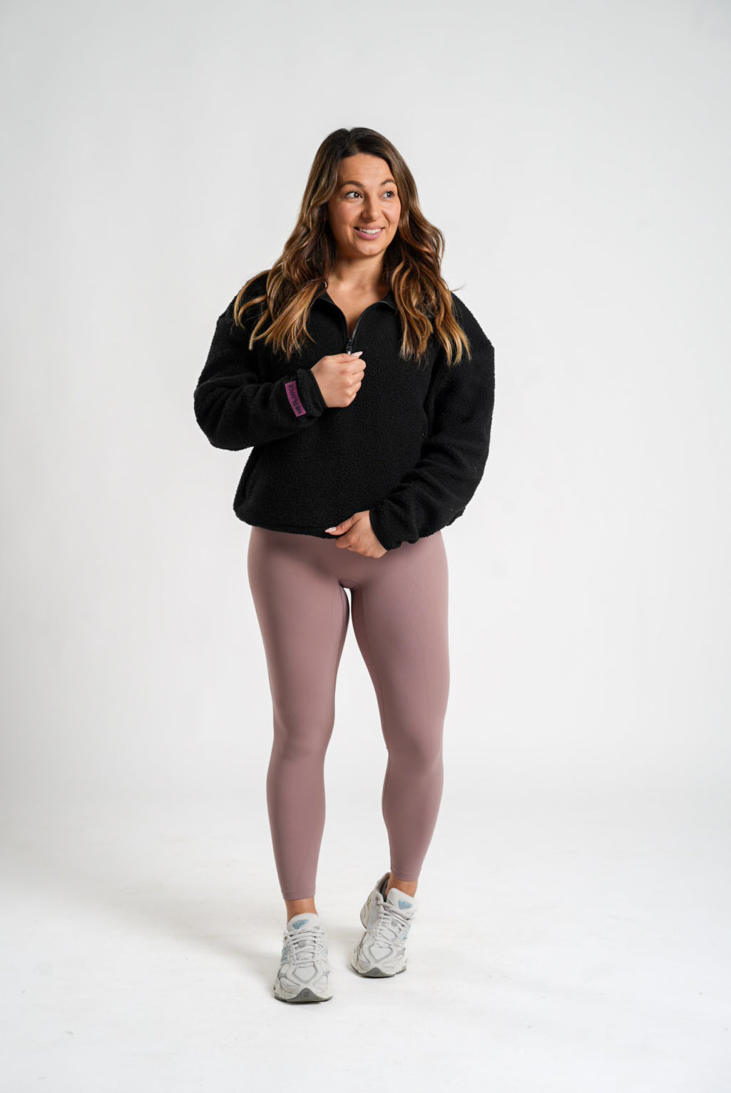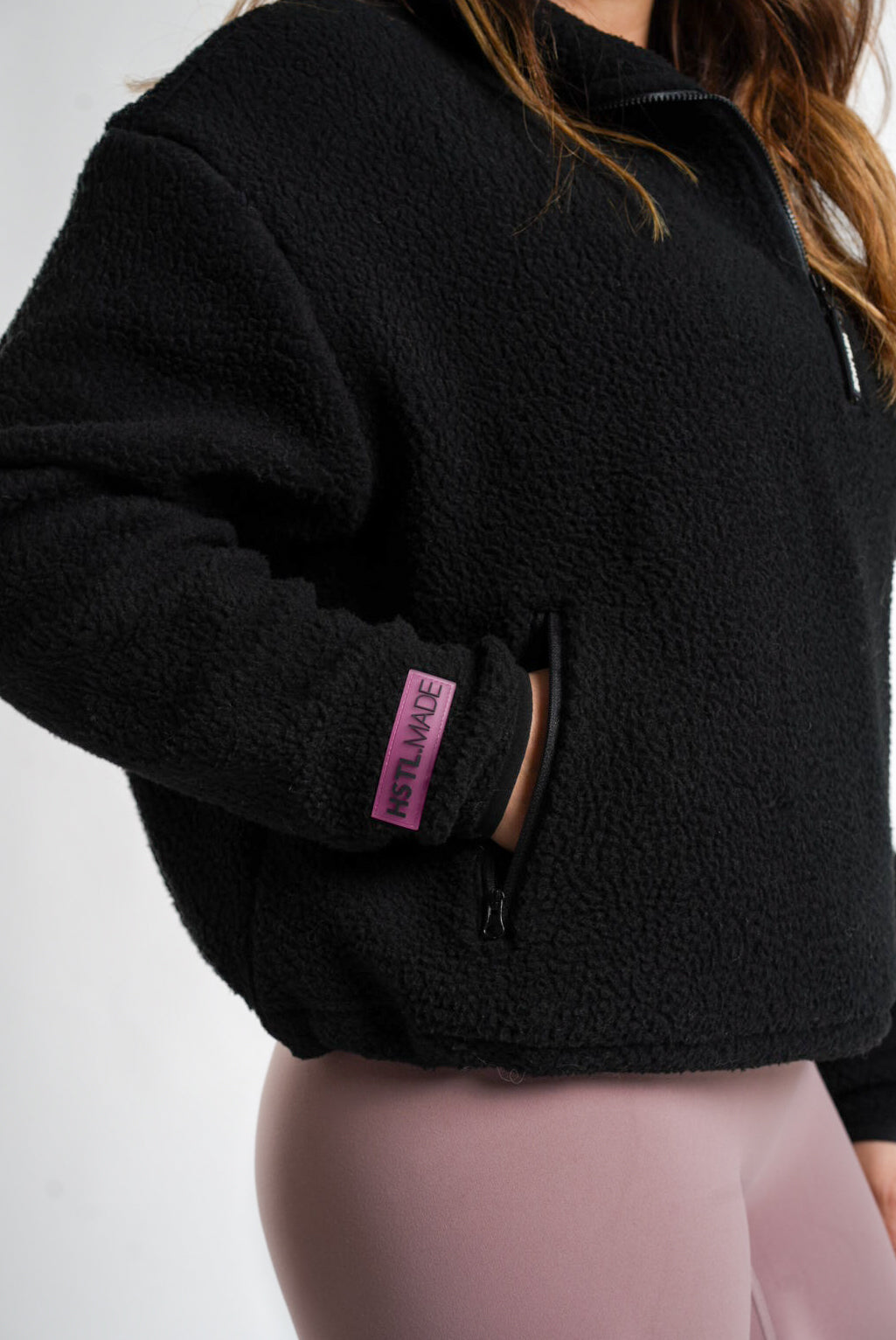 Ultimate comfort, warmth, and style collide in this essential fleece layering piece. Featuring a dropped shoulder, quarter-zip high-neck collar, with rubber badge logo detailing and zipper pull.