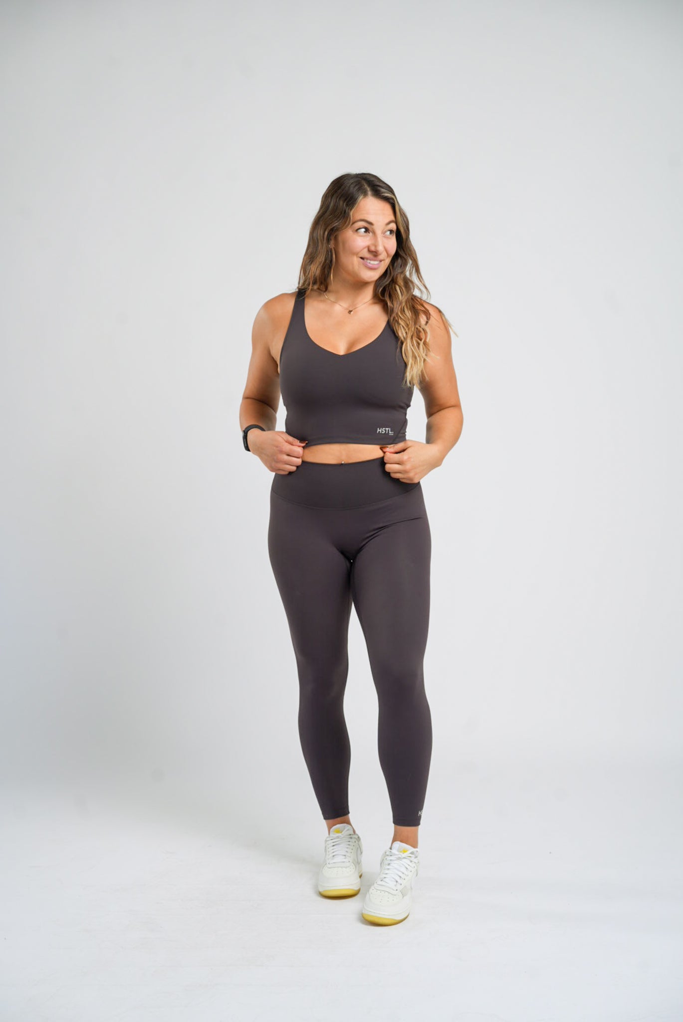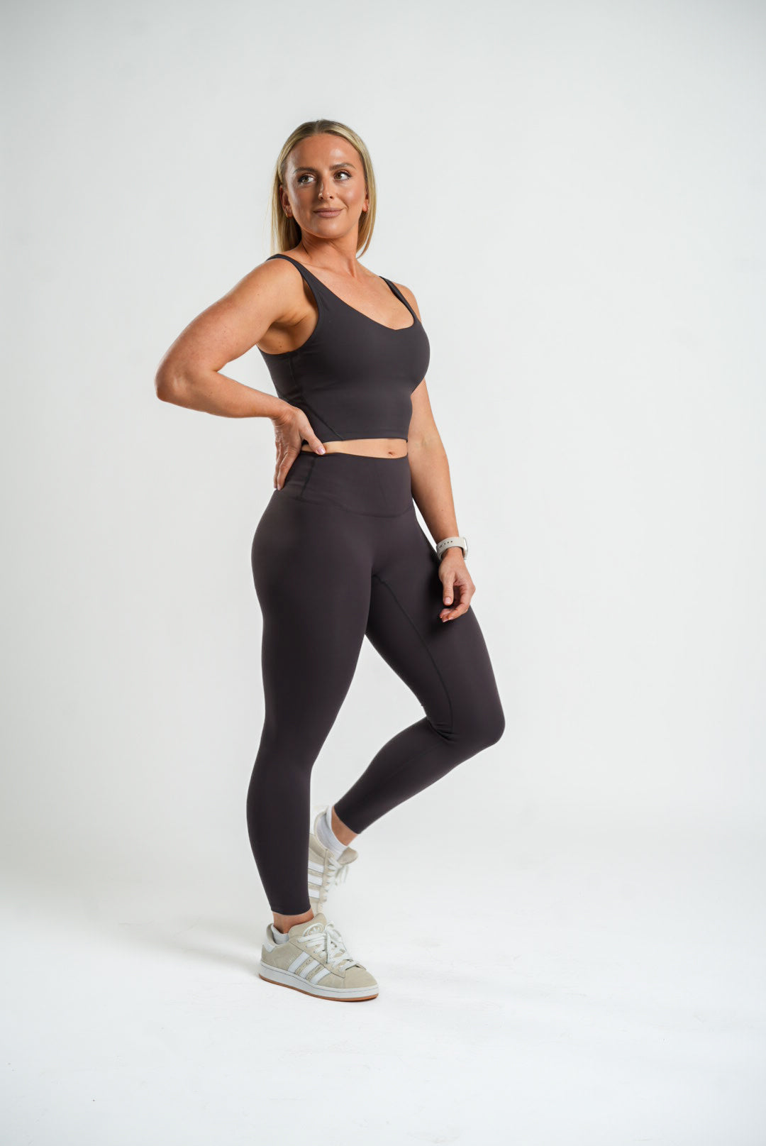 Our clean, timeless and minimal leggings with a high-waist. Featuring clean branding on the bottom of the leg and back of waistband