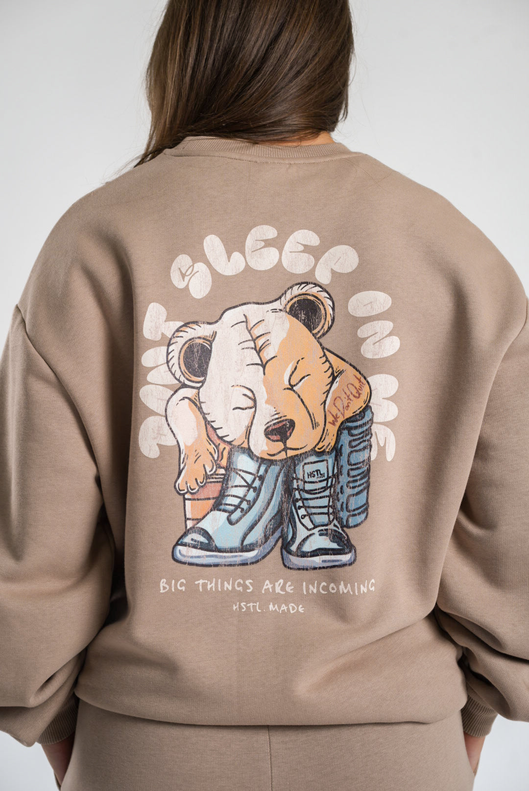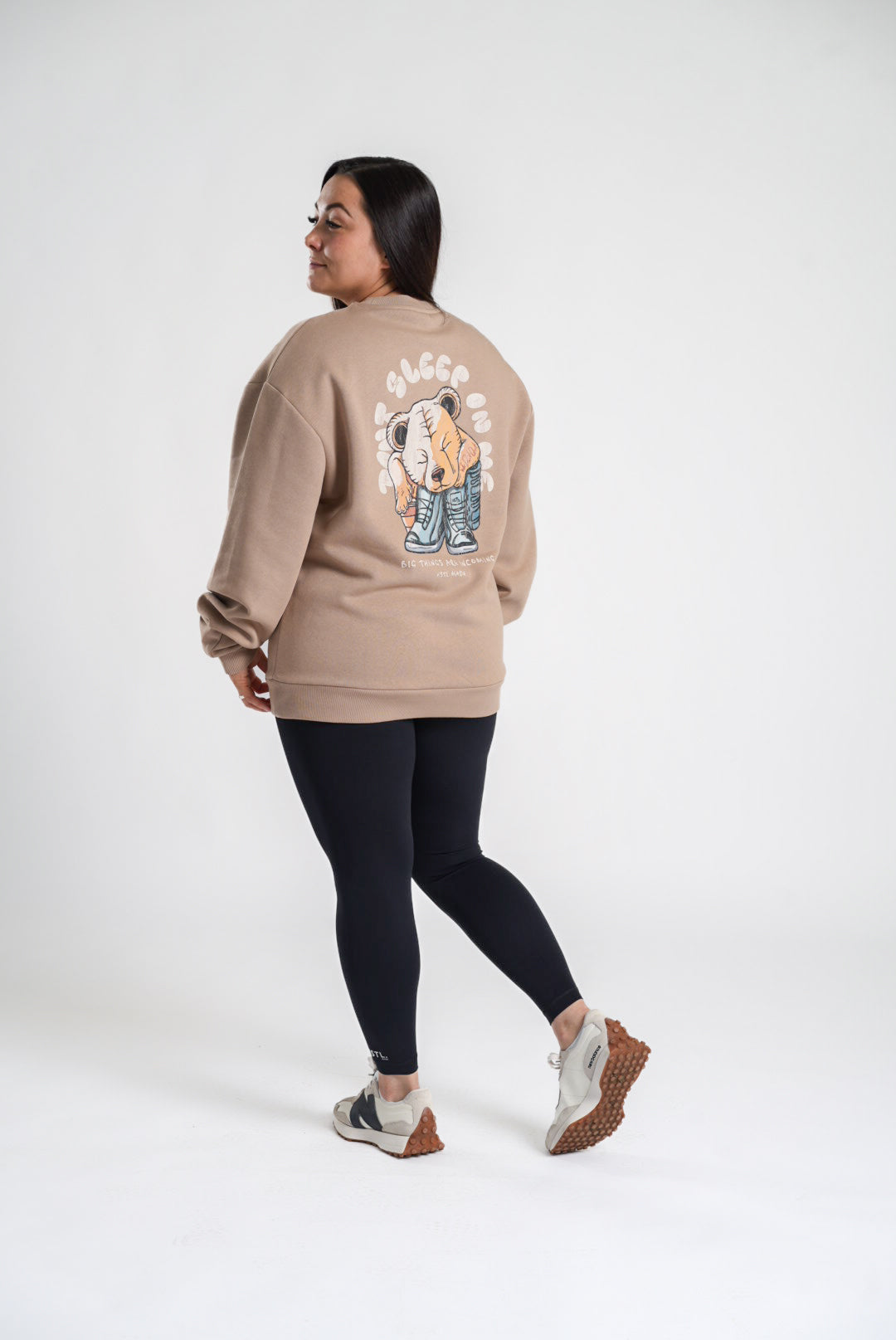Comfort with a message. Putting in the work, day in and day out, to make your dreams happen. Big things are incoming. Rest and recharge in this fleece lined crewneck sweatshirt一 featuring our ‘Don’t Sleep On Me’ design on the back, a bubble font logo on the left chest, and a ribbed collar and hems.
