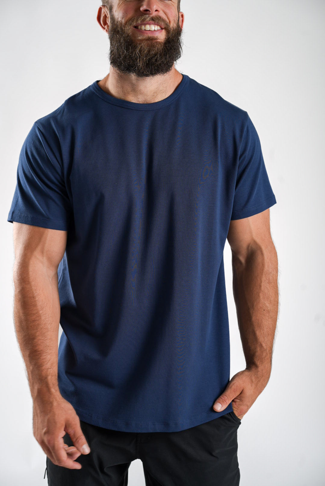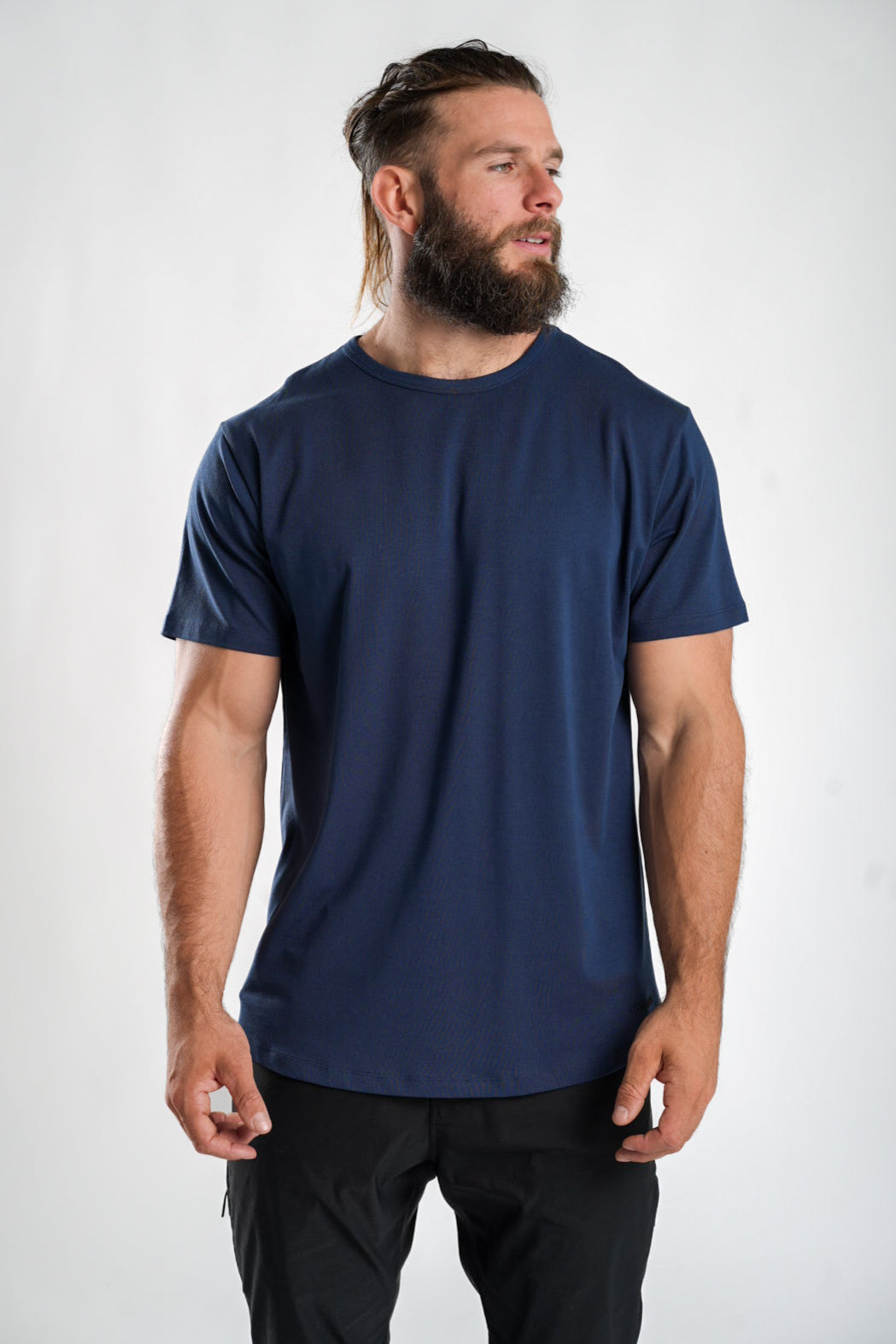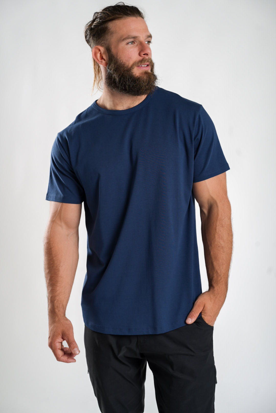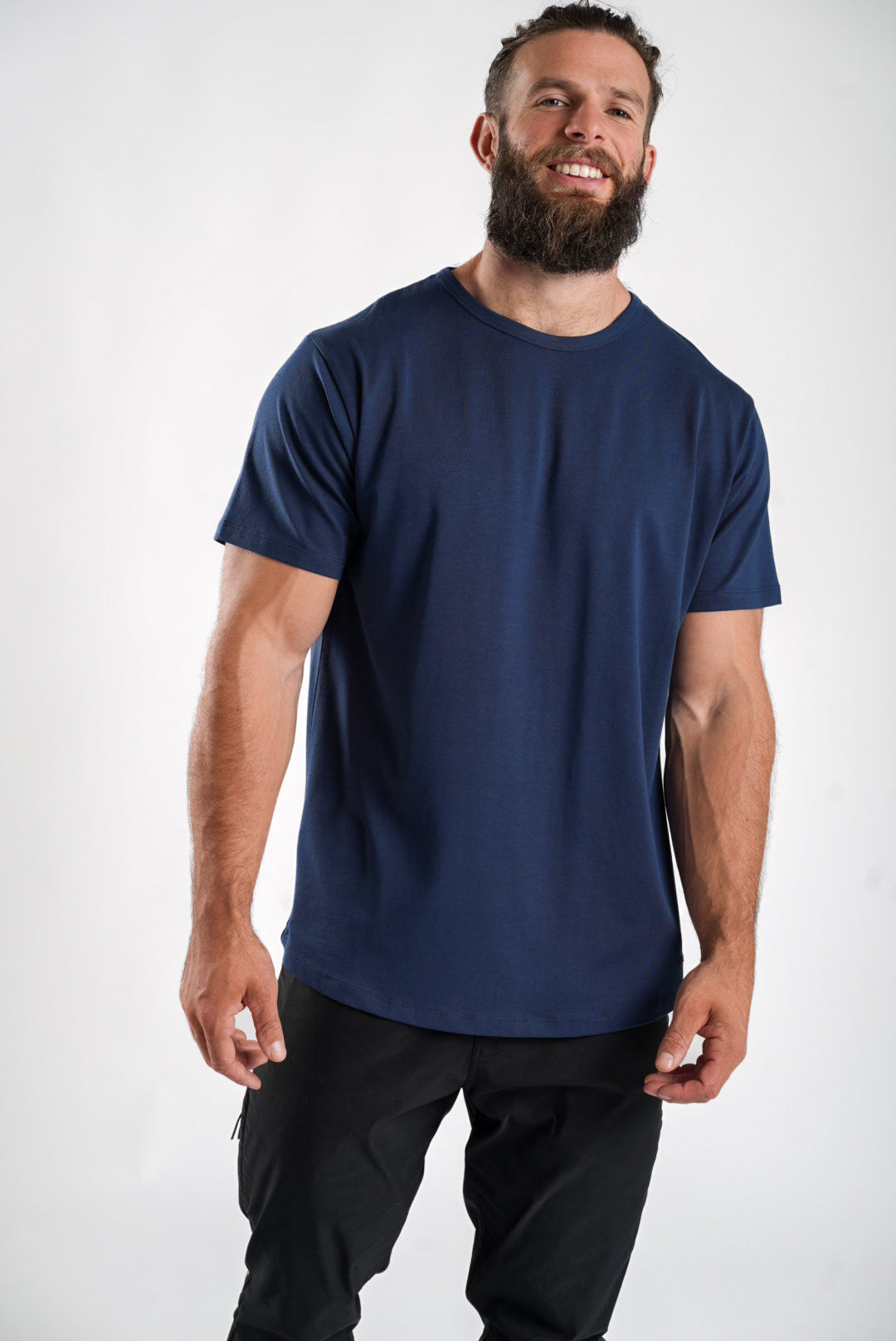 Meet all day, every day style and comfort. Crafted from a premium cotton blend, this tee delivers unmatched softness, lightweight breathability, and natural stretch that moves with you. The dropped hem in the front and back adds a modern edge to a classic silhouette, while the tonal textured logo at the hem keeps the look clean and versatile. From morning grind to evening downtime, this is the essential your wardrobe’s been missing.