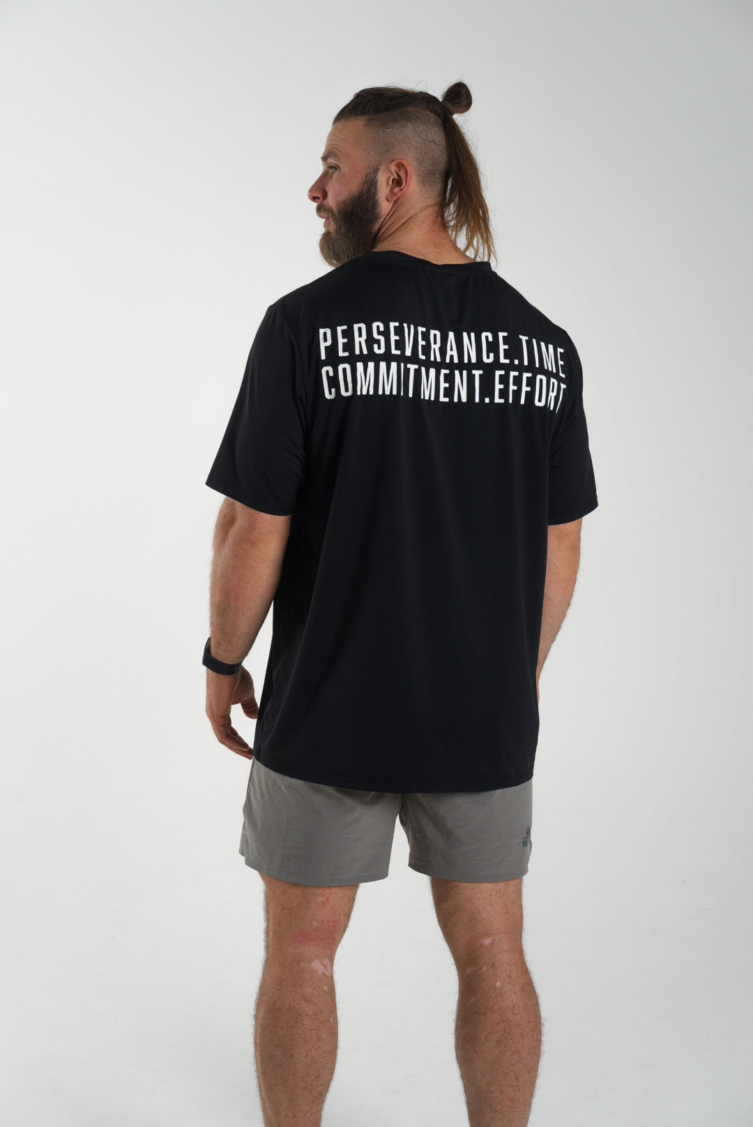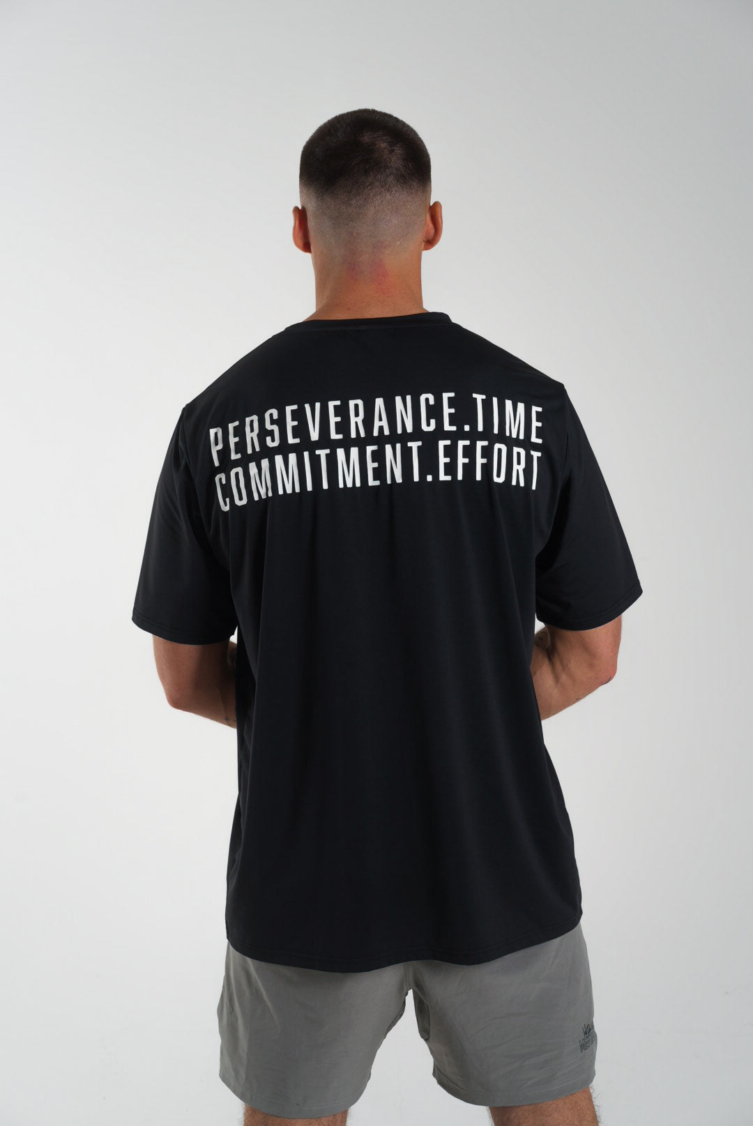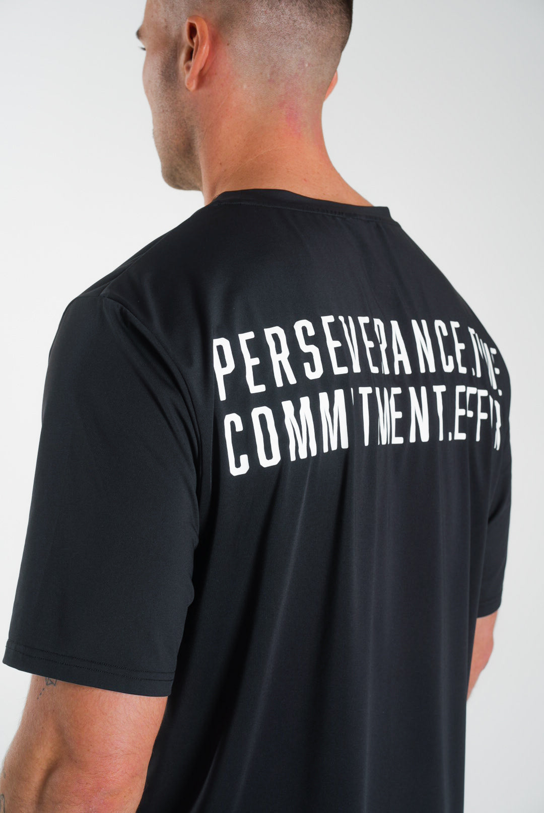 Perseverance takes time. Commitment takes effort. Wear this message proudly with our tech tees. Crewneck design and regular fit with comfort, stretch, and breathability that will help you push through any workout. These are a sell-out favorite. Built for comfort, built for performance.
