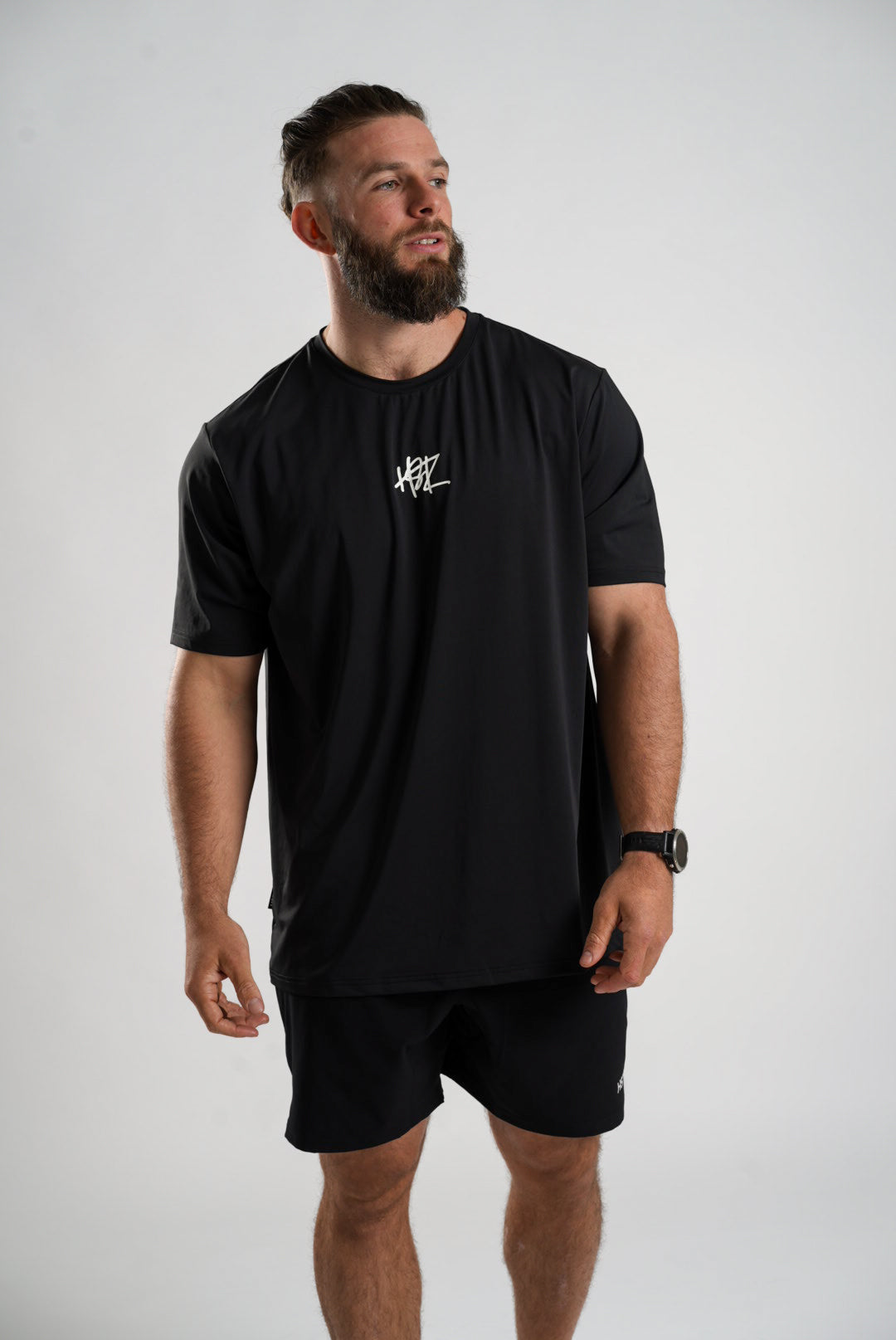 The material, stretch, and fit of our best selling tech tees, paired with our flow state logo. This tee flows with you, featuring the comfort, stretch, and breathability that will help you push through any workout. Built for comfort, built for performance.