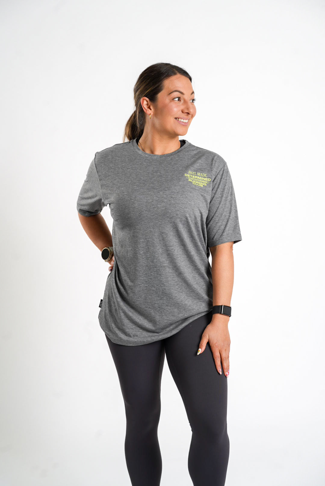 The Just Keep Running Tee is more than just a shirt—it’s a mindset. Made from ultra-soft, hi-stretch fabric, this mid-weight tee moves with you, whether you're logging miles or grinding through everyday life. The design is a nod to those who set goals and keep showing up—no matter how tough the road gets.