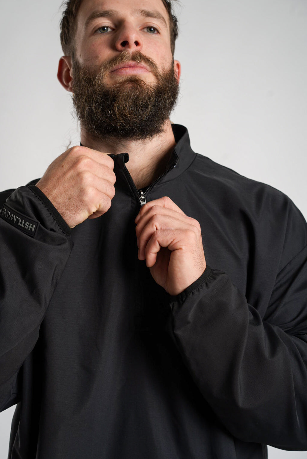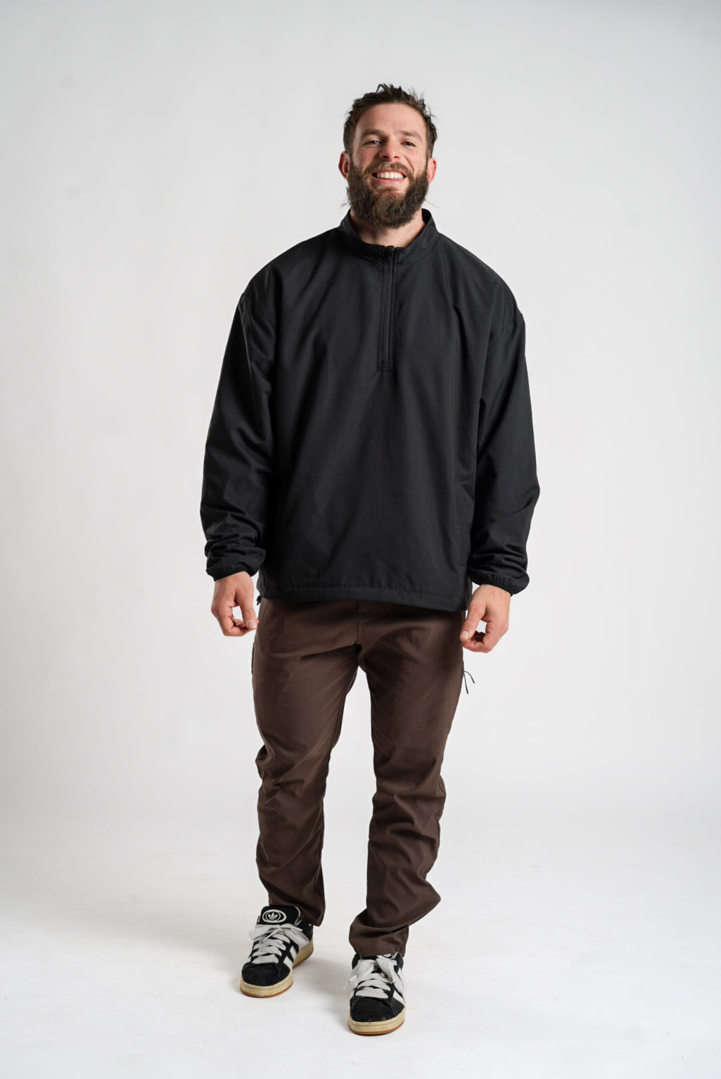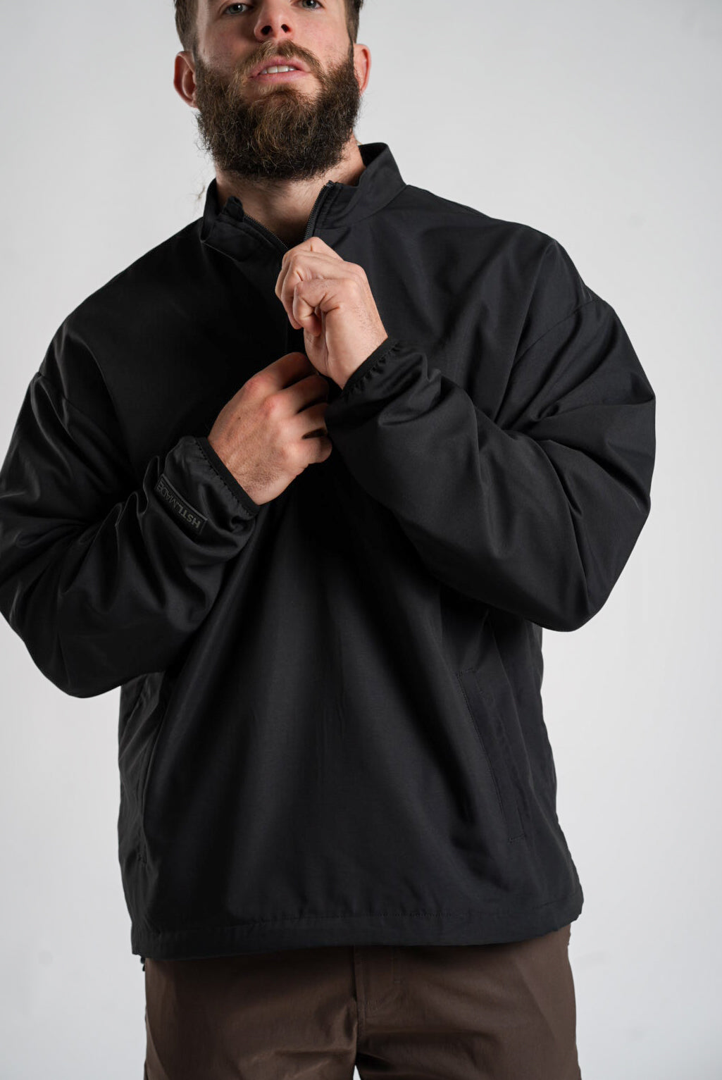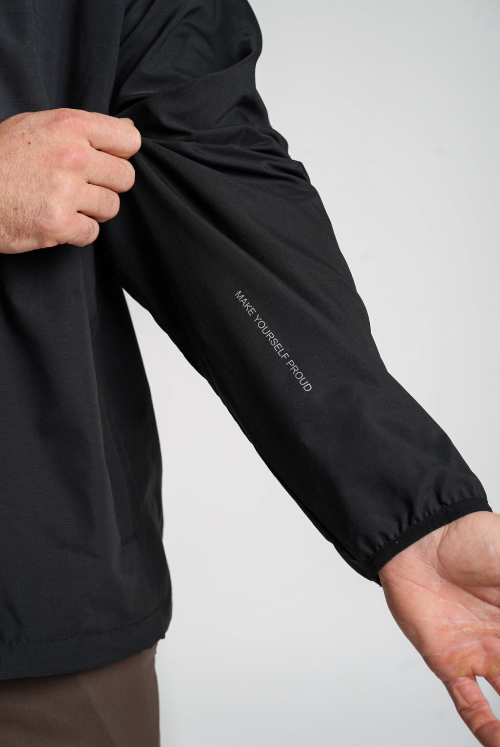 A lightweight pullover anorak suited for the daily hustle, especially those cooler training days. Offering a relaxed fit, this anorak is perfect for layering with its adaptable elastic hem drawcord. Featuring a reminder on the sleeve to "make yourself proud."