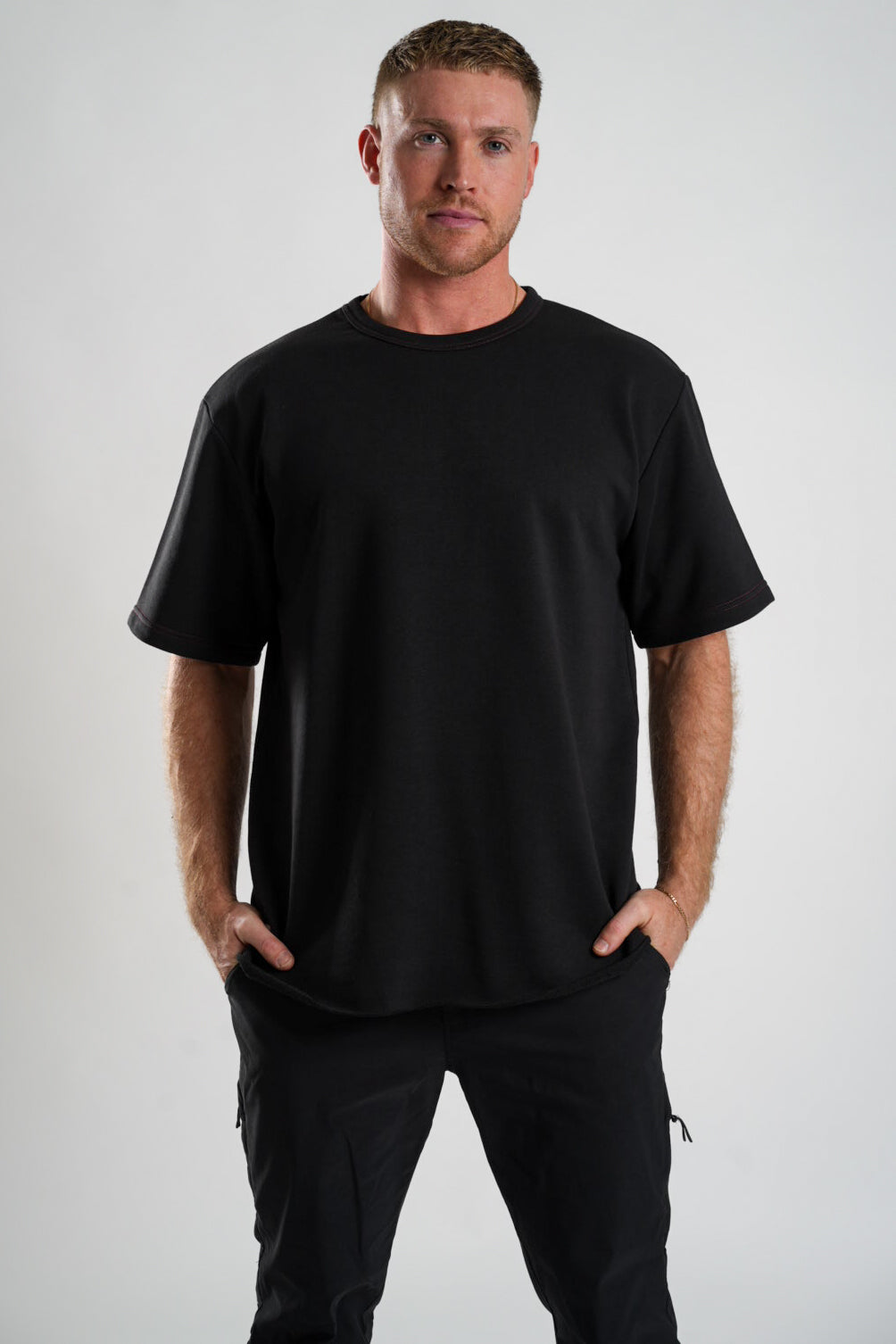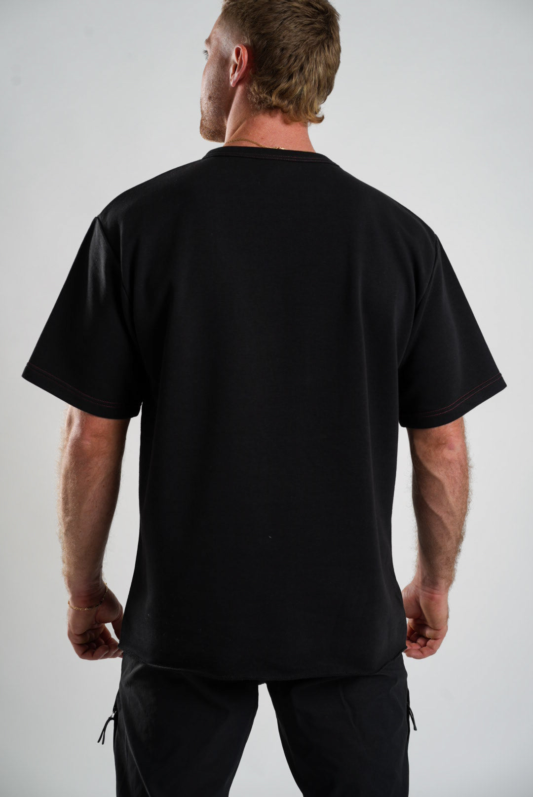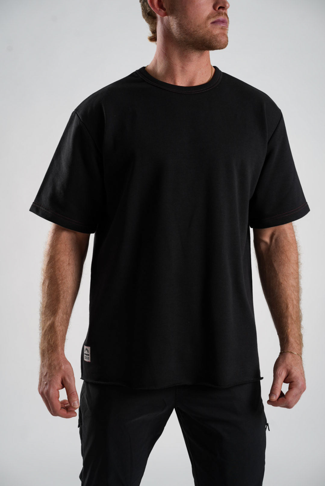 The Pump Tee is built for those who train hard and expect more from their gear. Made from a lightweight 100% cotton terry fabric, it's the perfect pump cover—roomy, breathable, and comfortable. With contrast stitching, an undone raw cut hem, tasteful woven label, and a modern boxy fit, this tee transitions effortlessly from the weight room to the rest of your day.