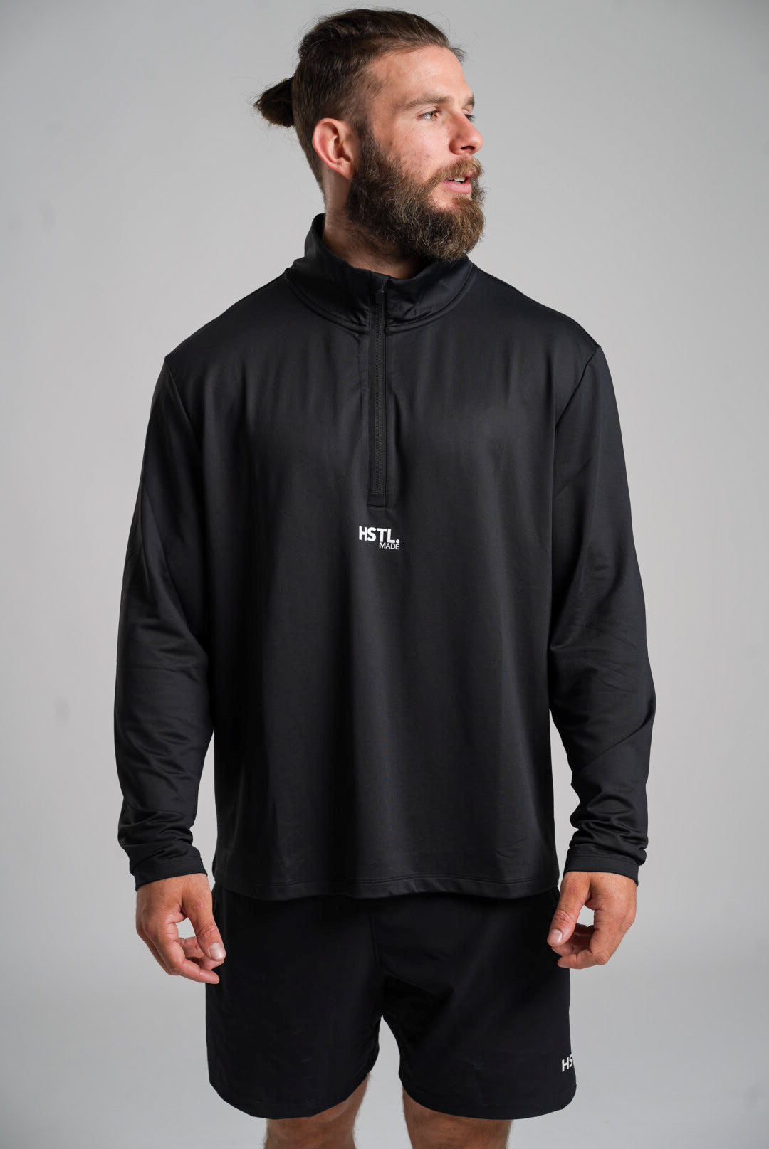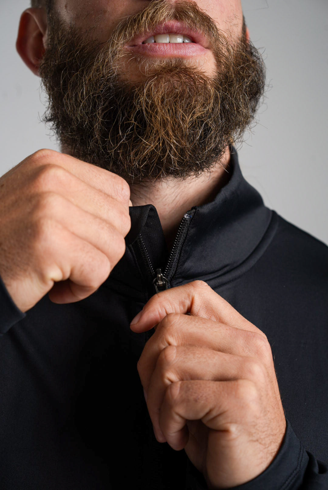 The grind doesn't stop once the seasons change. Crush those cooler training days with this long sleeve, high stretch, mid-weight training top featuring a quarter-zip neck with a standing collar. The perfect balance of enough extra weight to keep you warm, provided by a cool and silky fabric that won’t get overwhelming when the training session heats up.