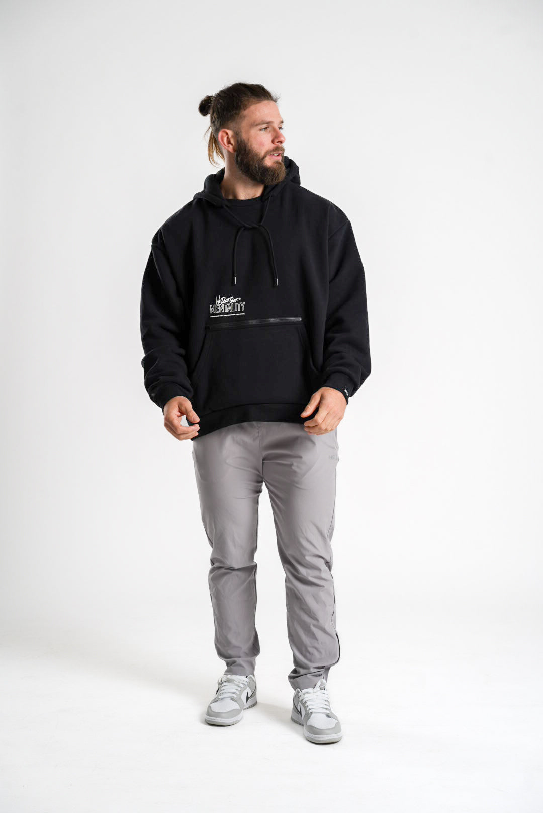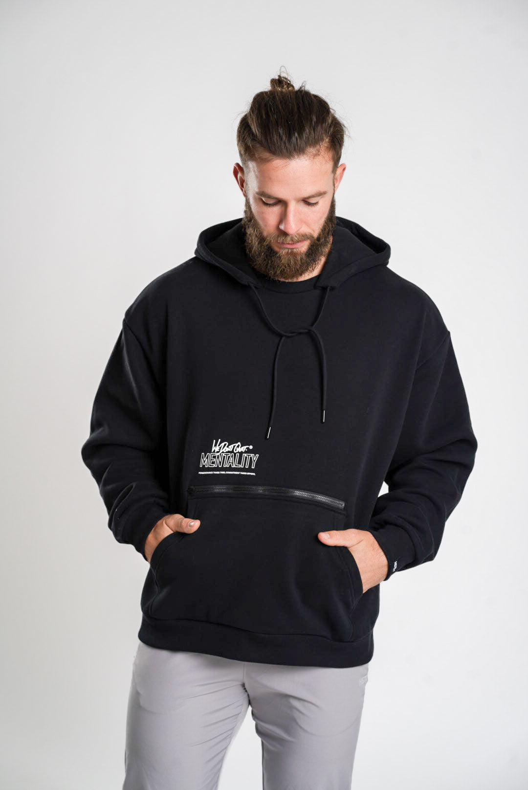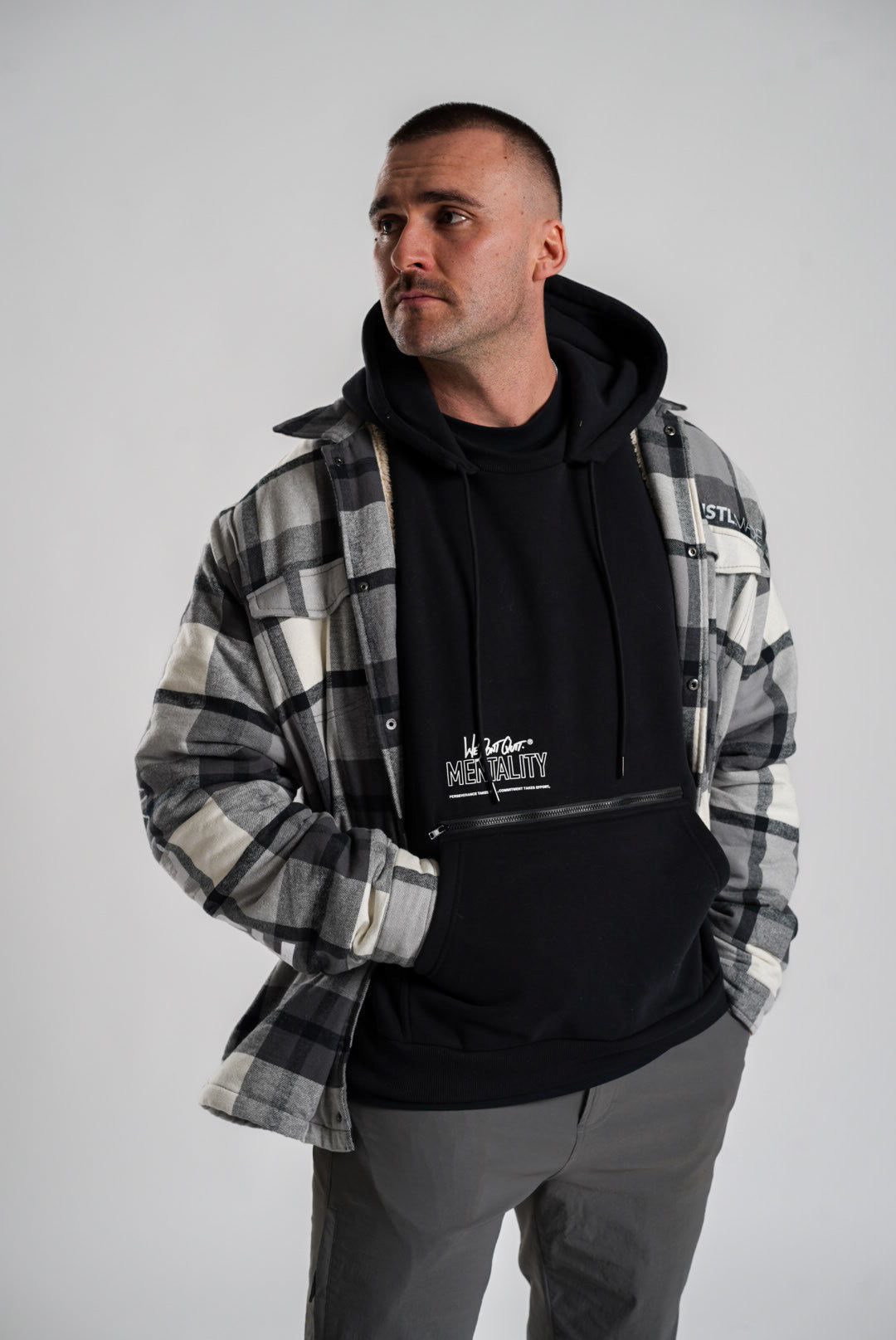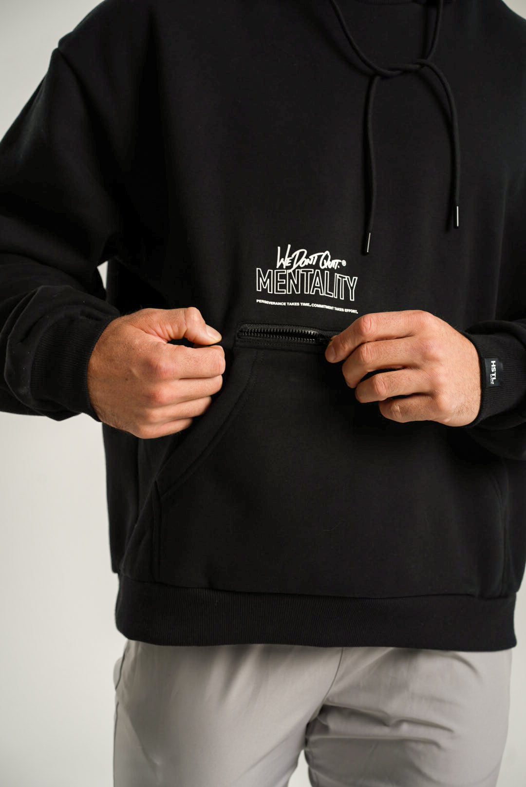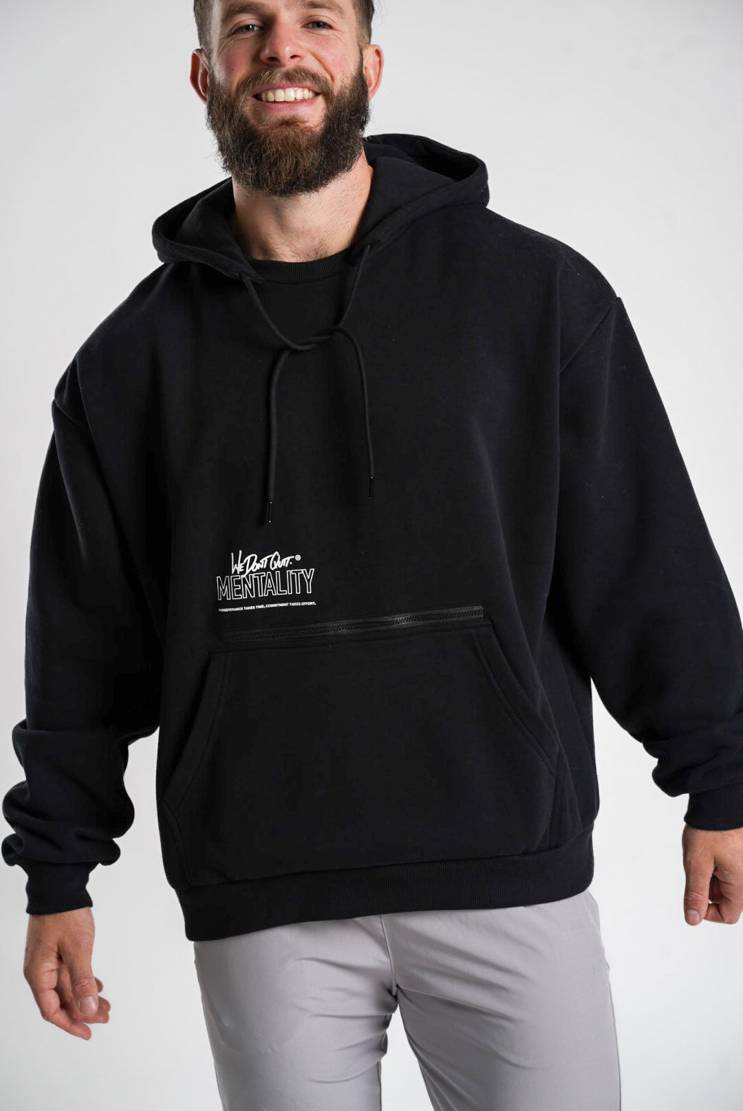 You'll be reaching for the Utility Hoodie every day. Ultimate comfort, style, and functionality collide. Featuring a paneled hood and crewneck insert detail, a zippered pocket behind the kangaroo pouch, and our "We Don't Quit" messaging to get you through the daily hustle.