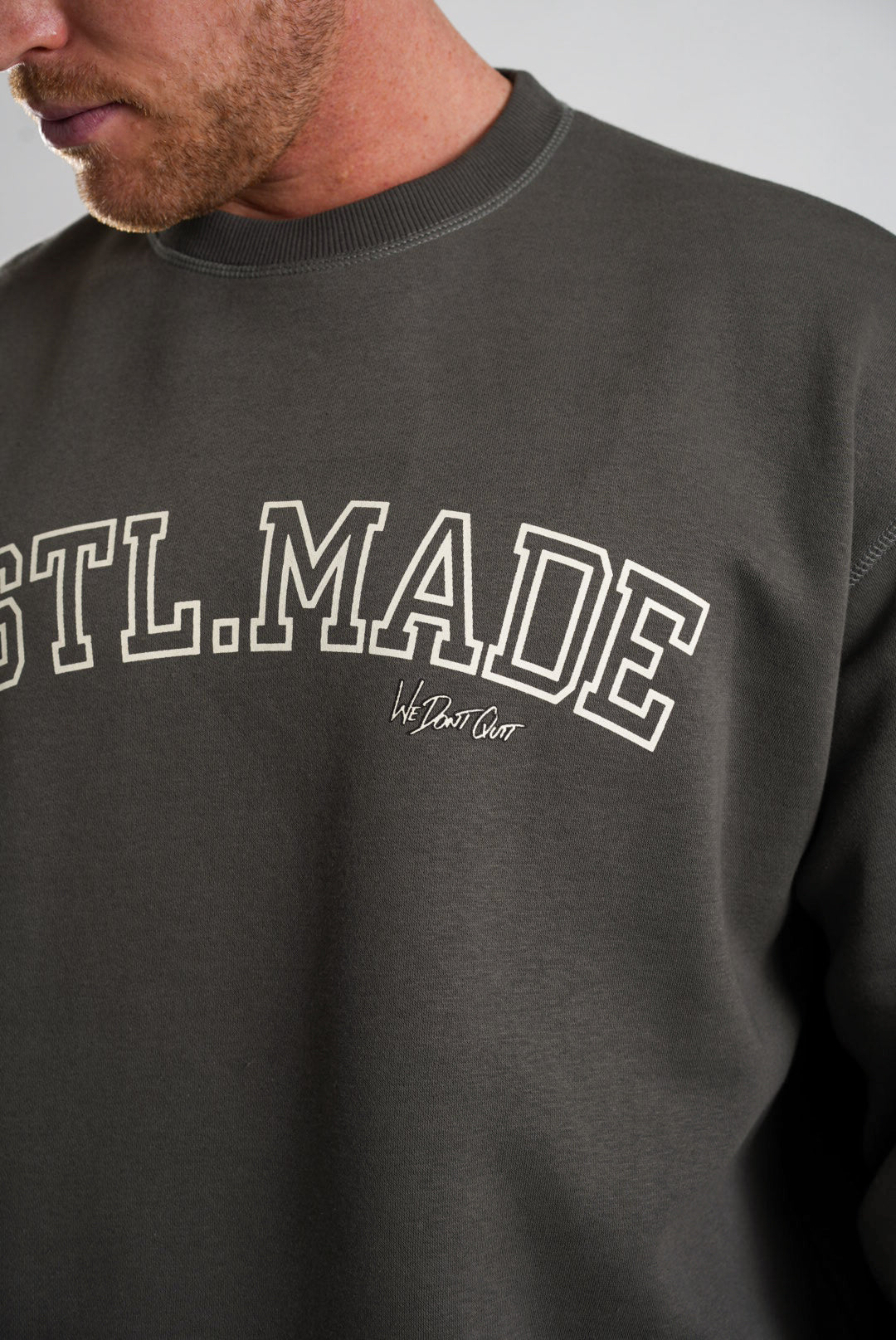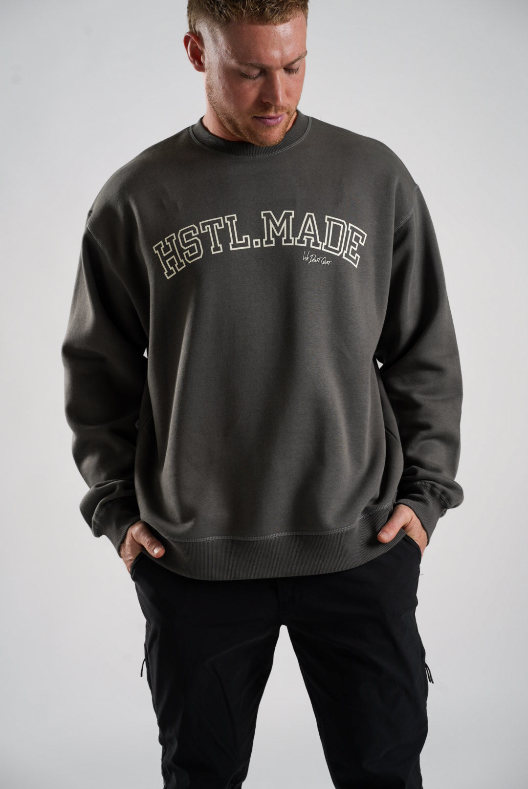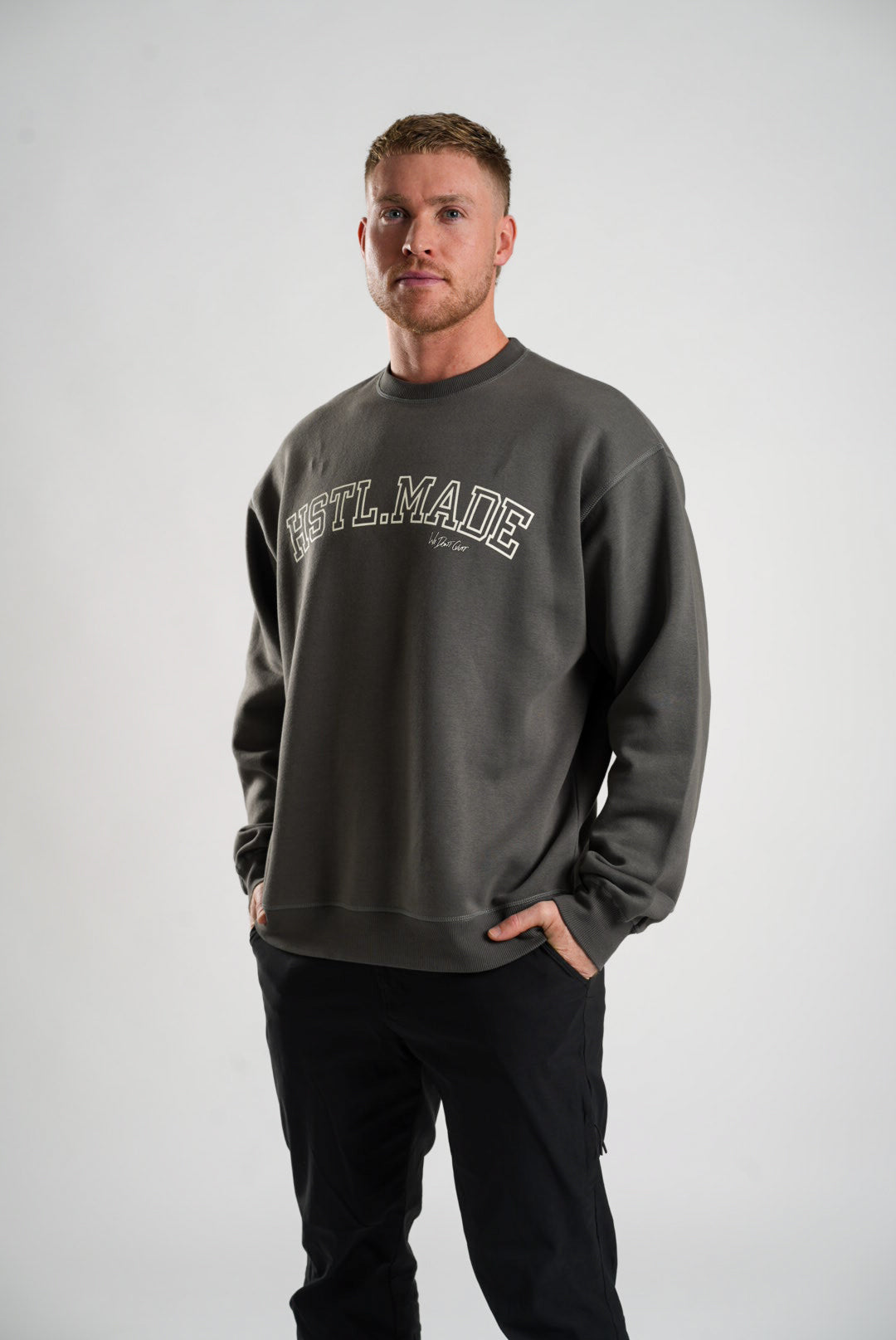 Where comfort meets confidence. The Varsity Crew is your new go-to for off-duty days that demand effortless style. Made from ultra-soft brushback cotton fabric, it features a ribbed collar, hem, and cuffs to keep the fit sharp—finished with our "We Don't Quit" mantra as a subtle nod to the mindset that drives everything we do.
