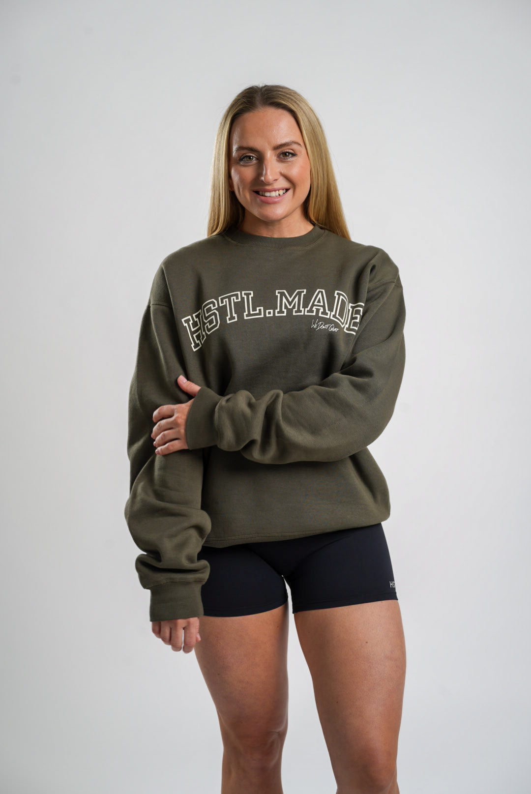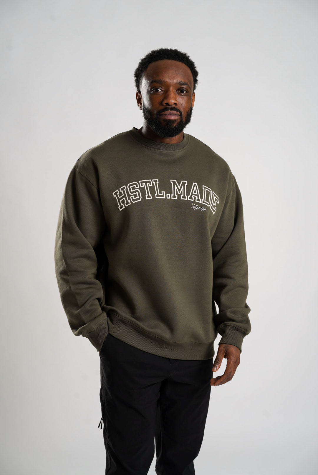 Where comfort meets confidence. The Varsity Crew is your new go-to for off-duty days that demand effortless style. Made from ultra-soft brushback cotton fabric, it features a ribbed collar, hem, and cuffs to keep the fit sharp—finished with our "We Don't Quit" mantra as a subtle nod to the mindset that drives everything we do.