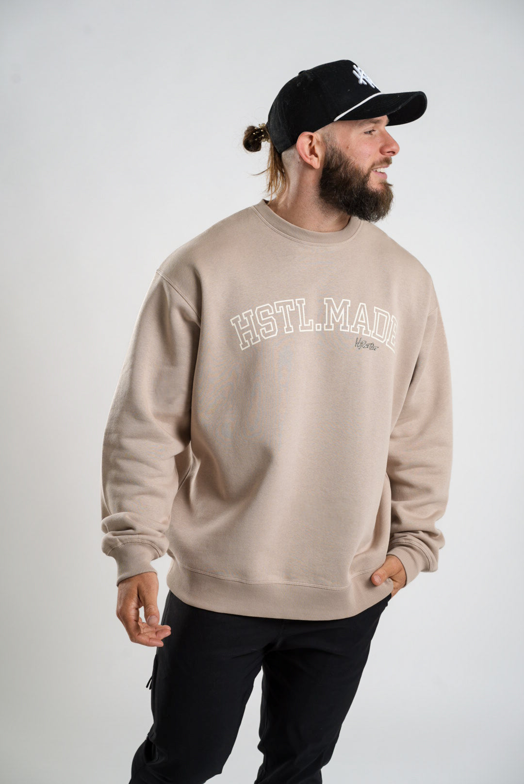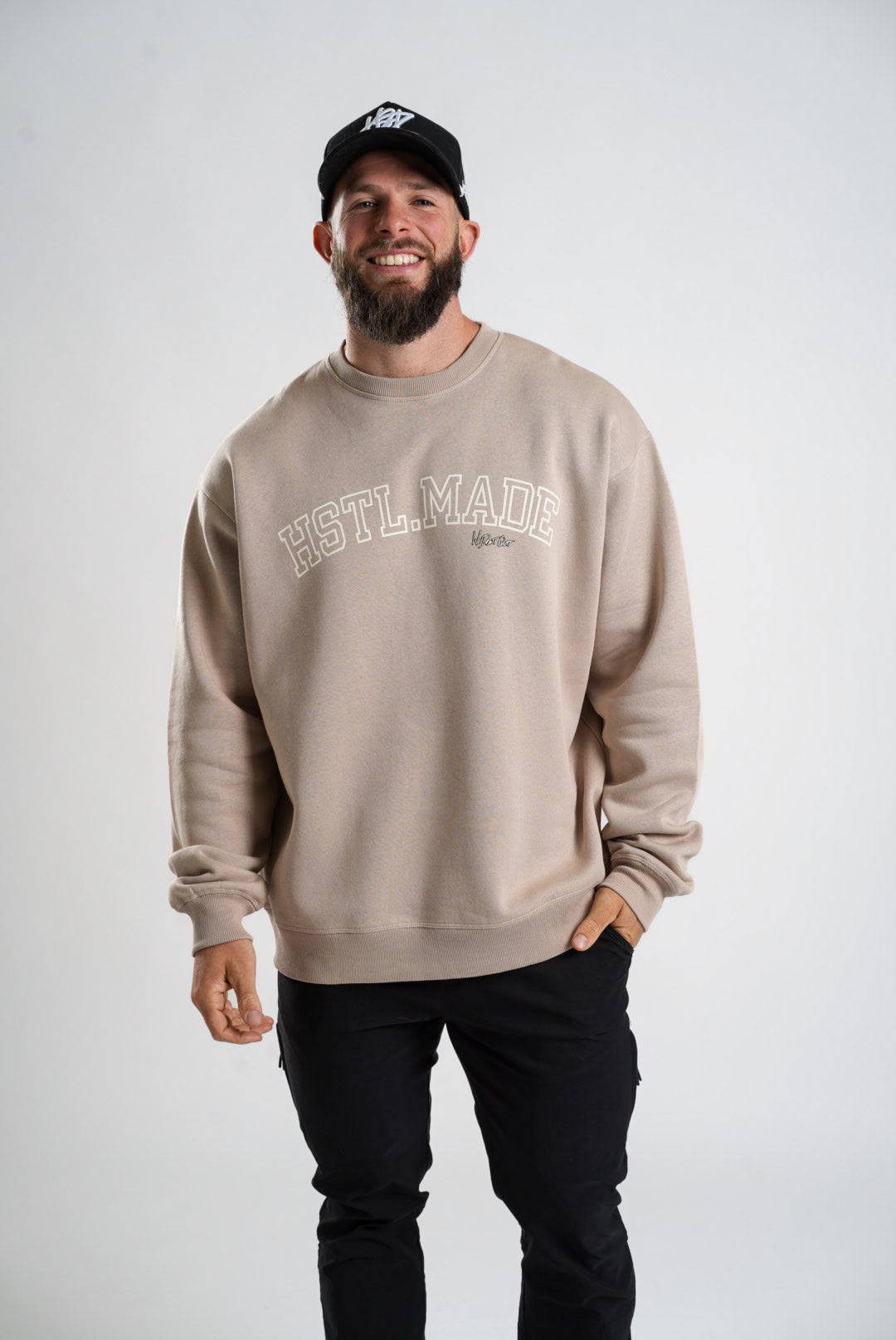 Where comfort meets confidence. The Varsity Crew is your new go-to for off-duty days that demand effortless style. Made from ultra-soft brushback cotton fabric, it features a ribbed collar, hem, and cuffs to keep the fit sharp—finished with our "We Don't Quit" mantra as a subtle nod to the mindset that drives everything we do.