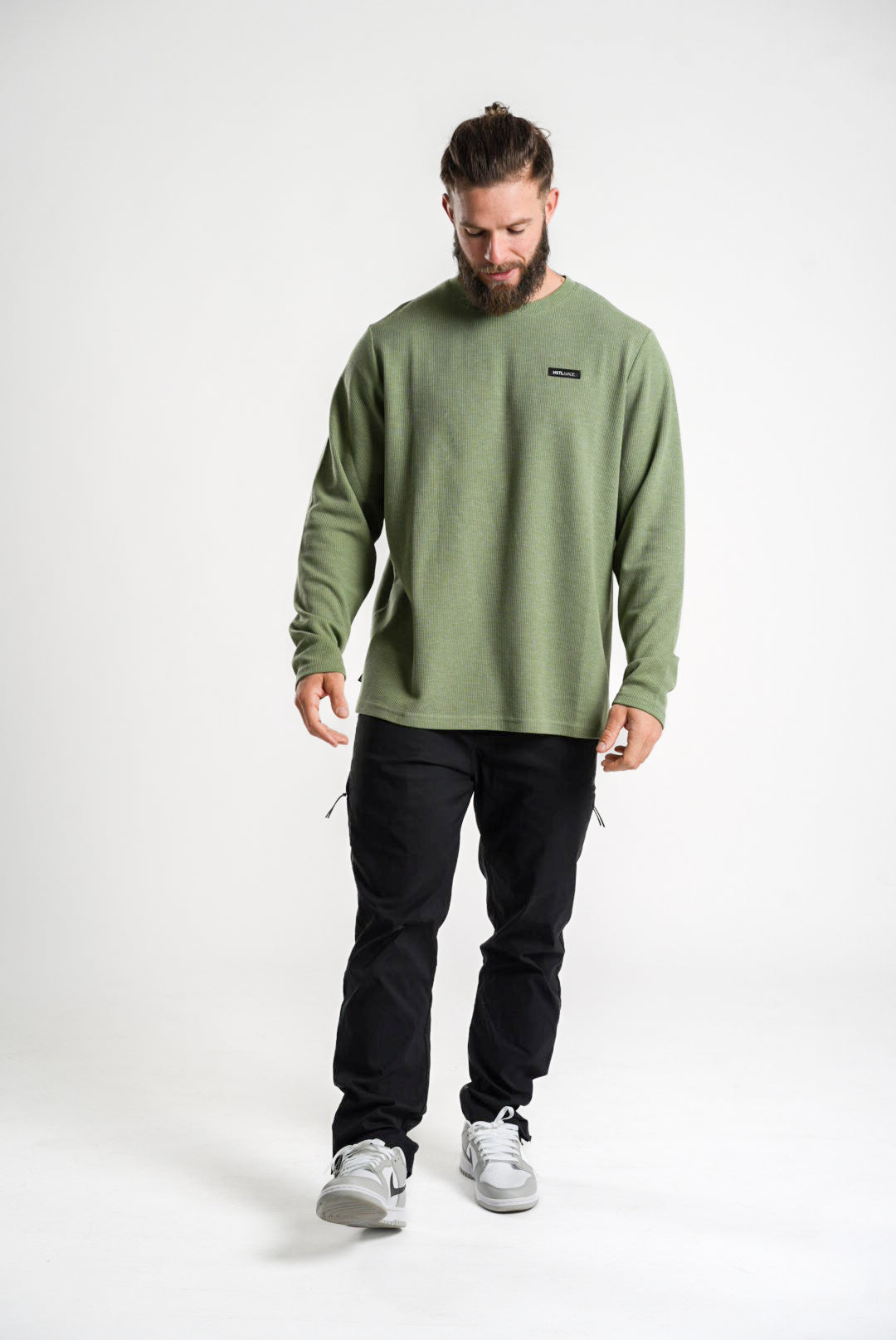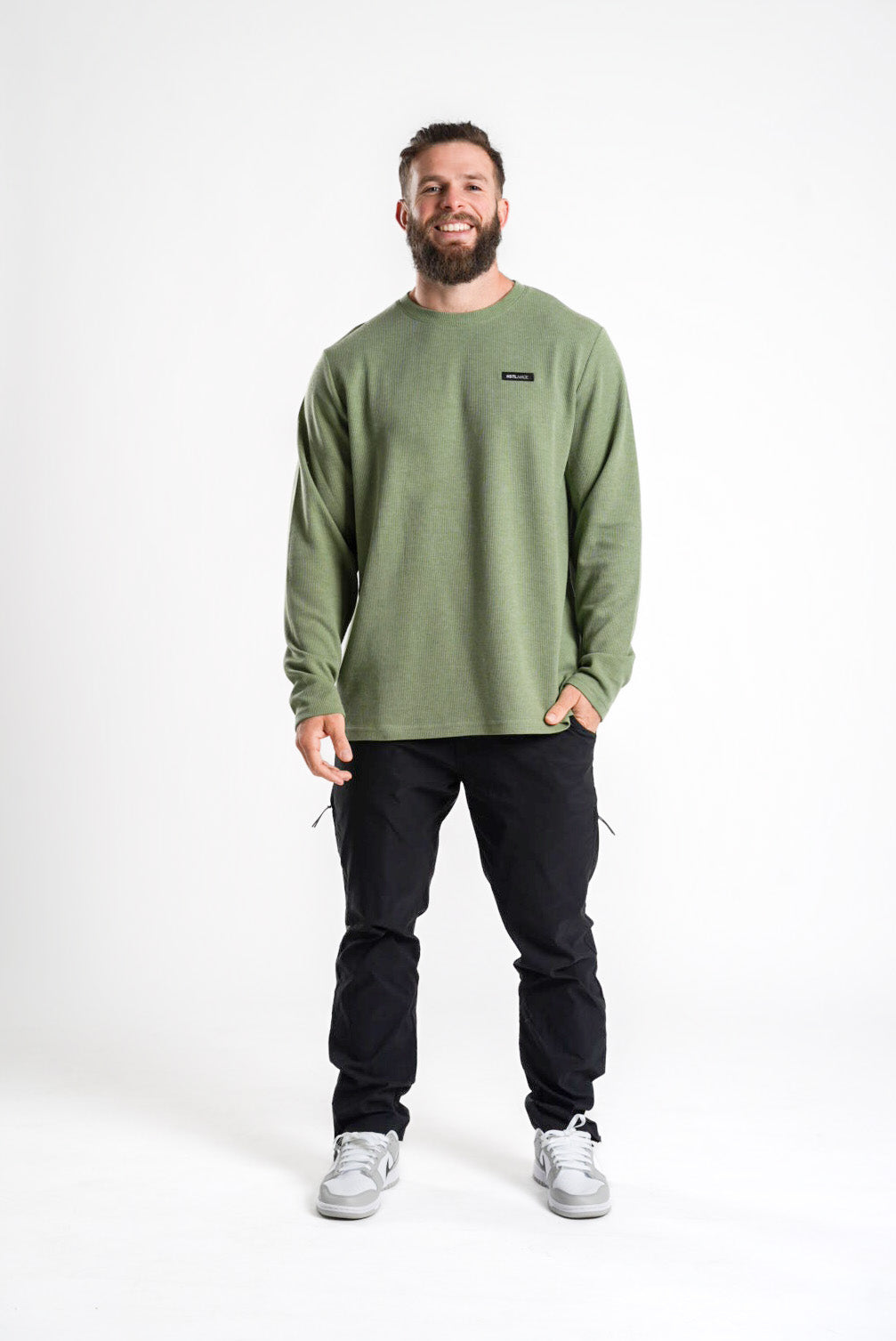This long-sleeve waffle is a sell-out favorite that's built for the daily hustle 一 comfortable enough to train in, but stylish enough to go to dinner in. The Woven Patch Long Sleeve Waffle Tee cuts out the fuss with its soft, moisture wicking, stretchy material and stylish waffle texture.
