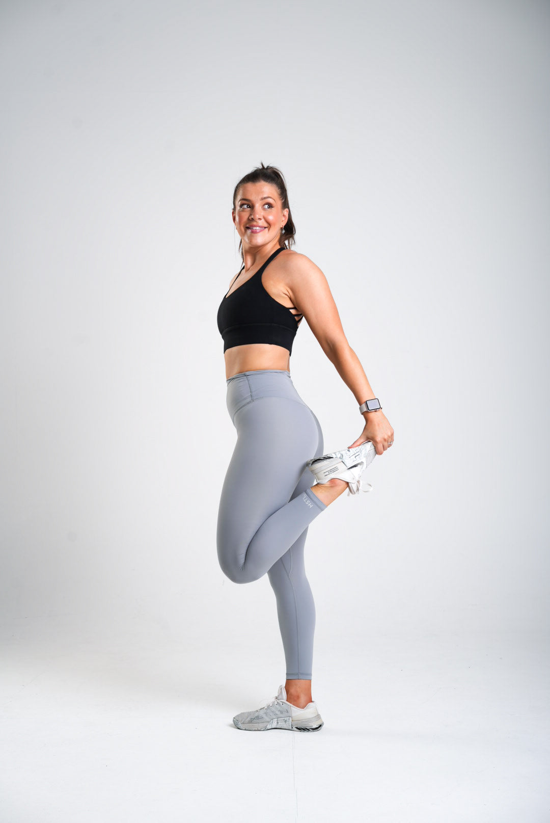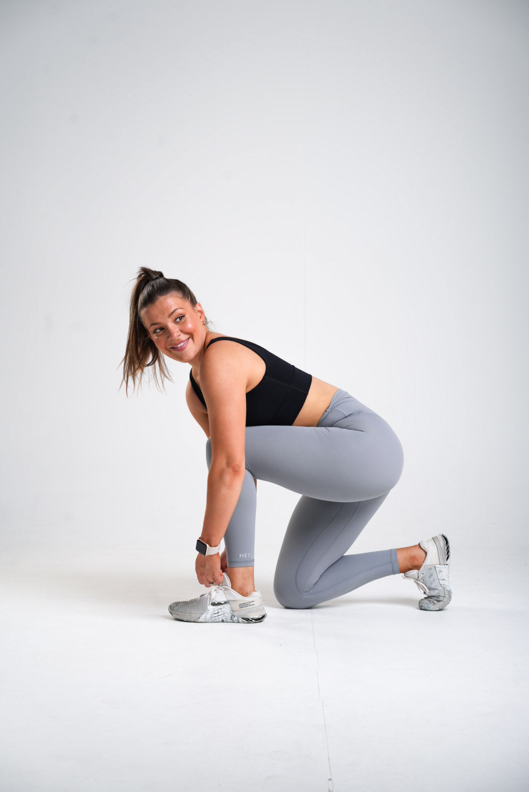 Our clean, timeless and minimal leggings with a super duper high-waist. Clean branding on the bottom of the leg and back of waistband