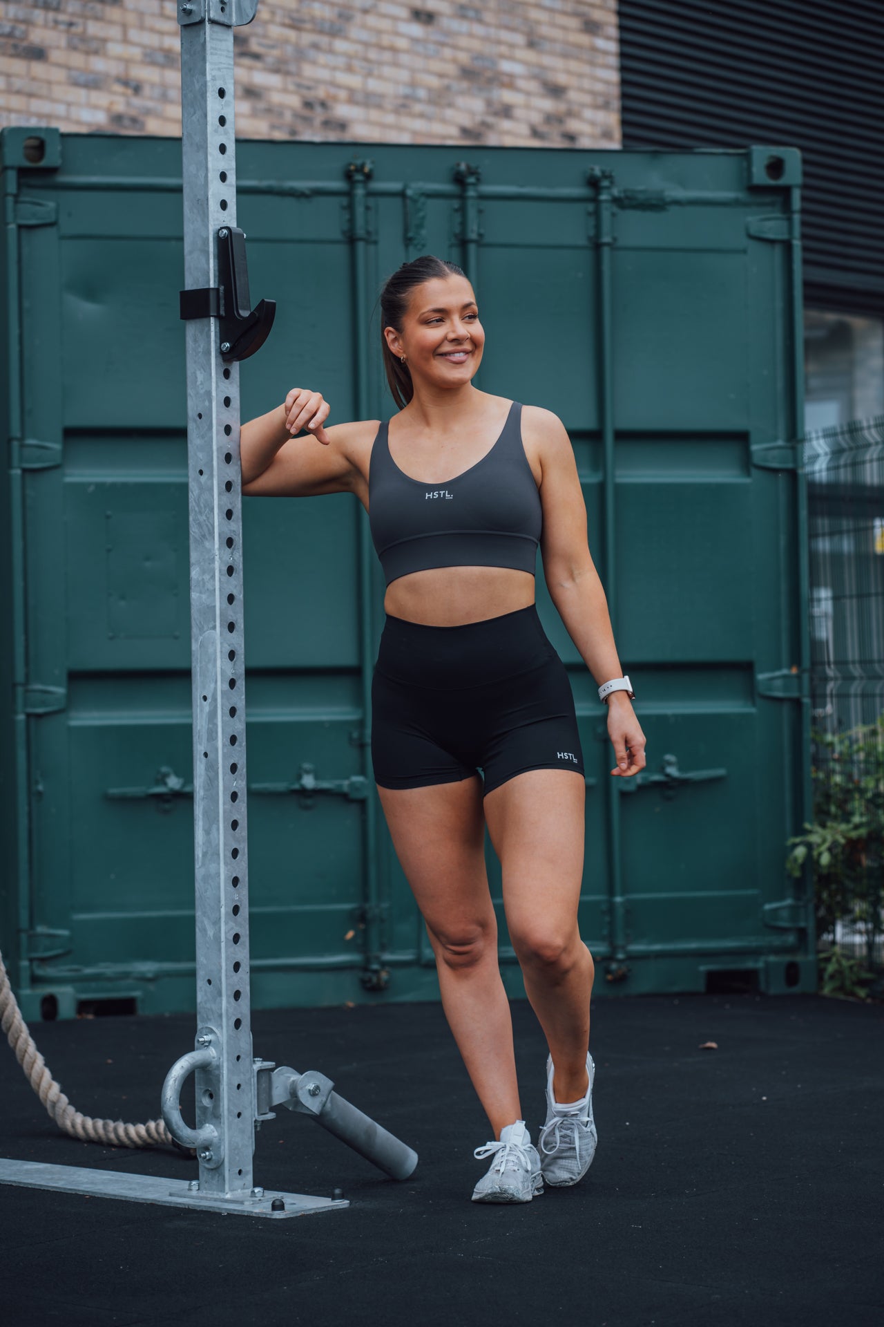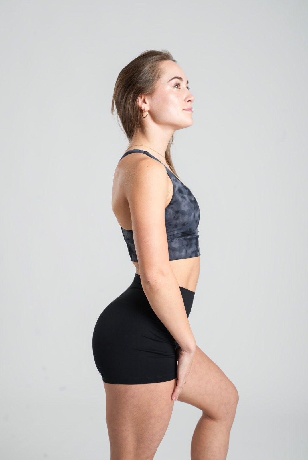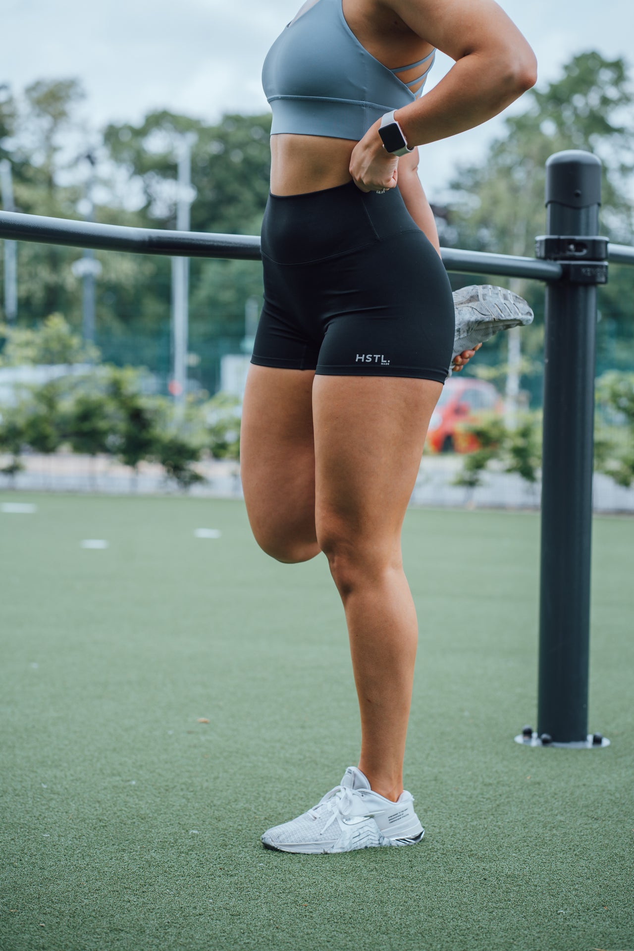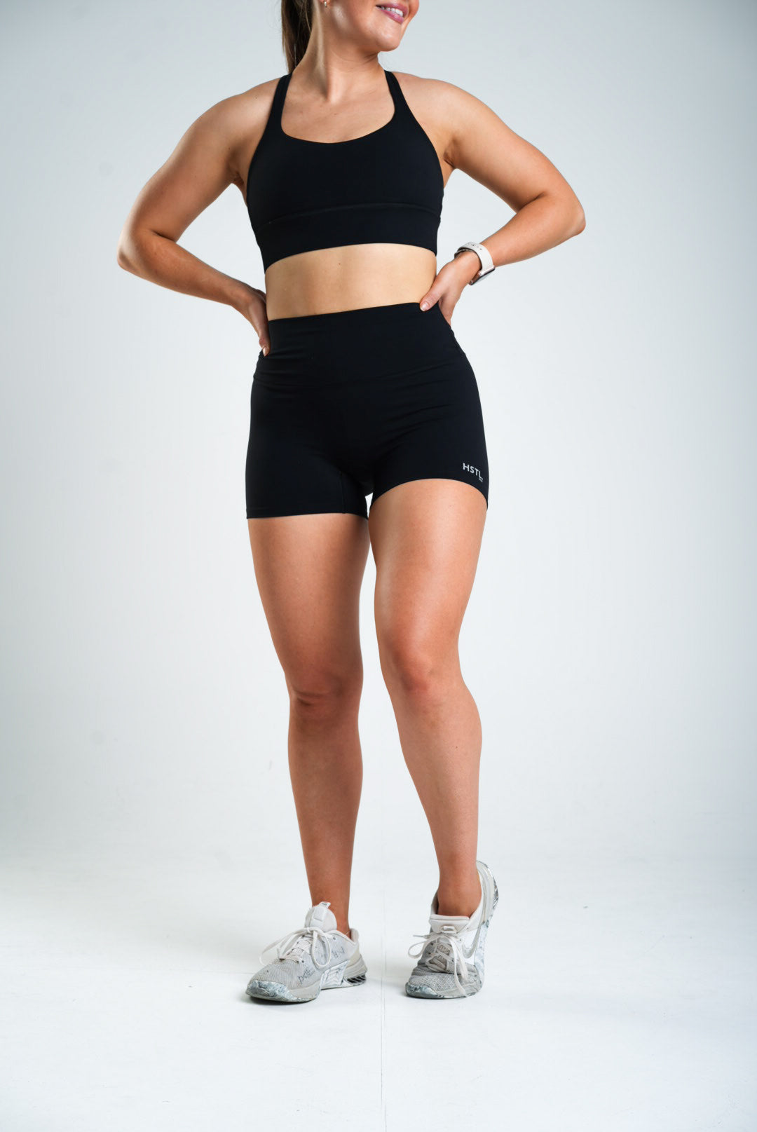 Our clean, timeless, and minimal shorts with a high-waist. Clean branding on the back of the waistband.