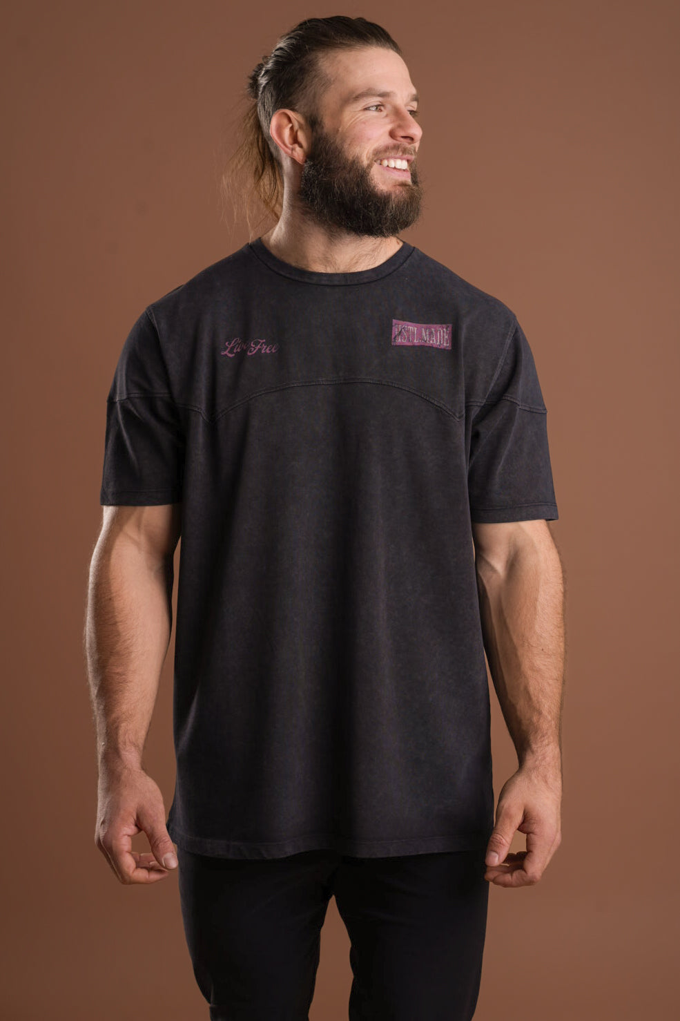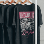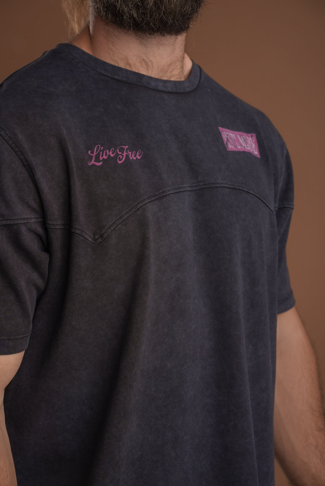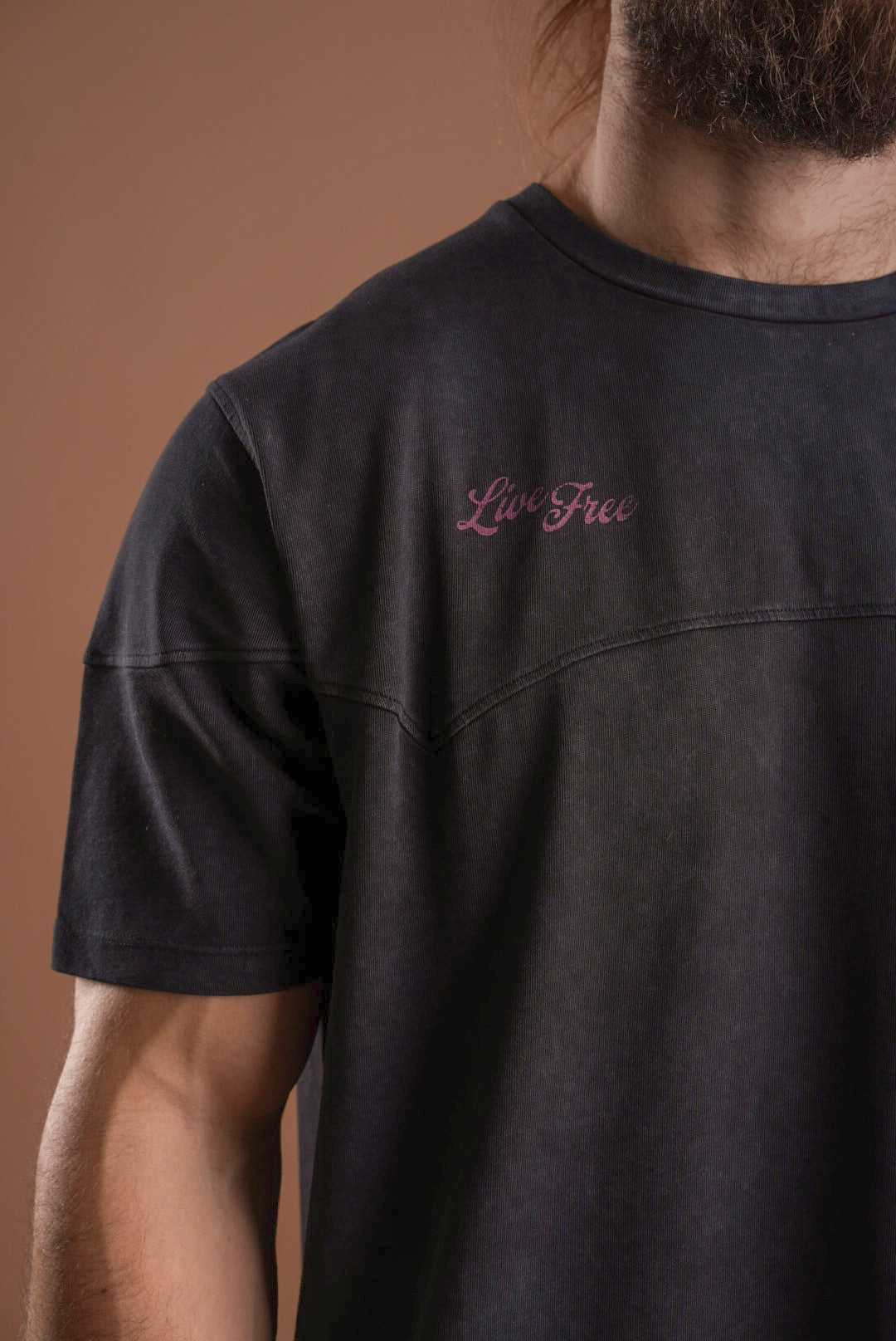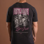 Your new go-to tee for anywhere the day takes you. This statement tee brings that lived-in feel from the first wear, thanks to its vintage wash, distressed details, and relaxed, boxier fit. The front features two subtle hits — our Western logo on the left and “Live Free” on the right — while the back delivers the full impact with a bold “Live Free” graphic that captures the confidence and freedom we aim to carry into every moment.