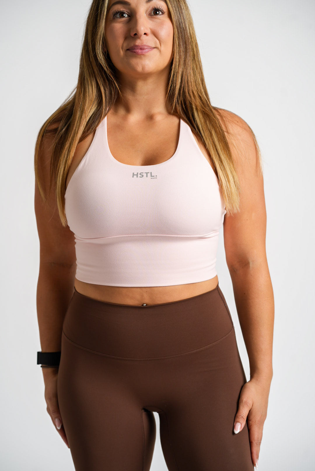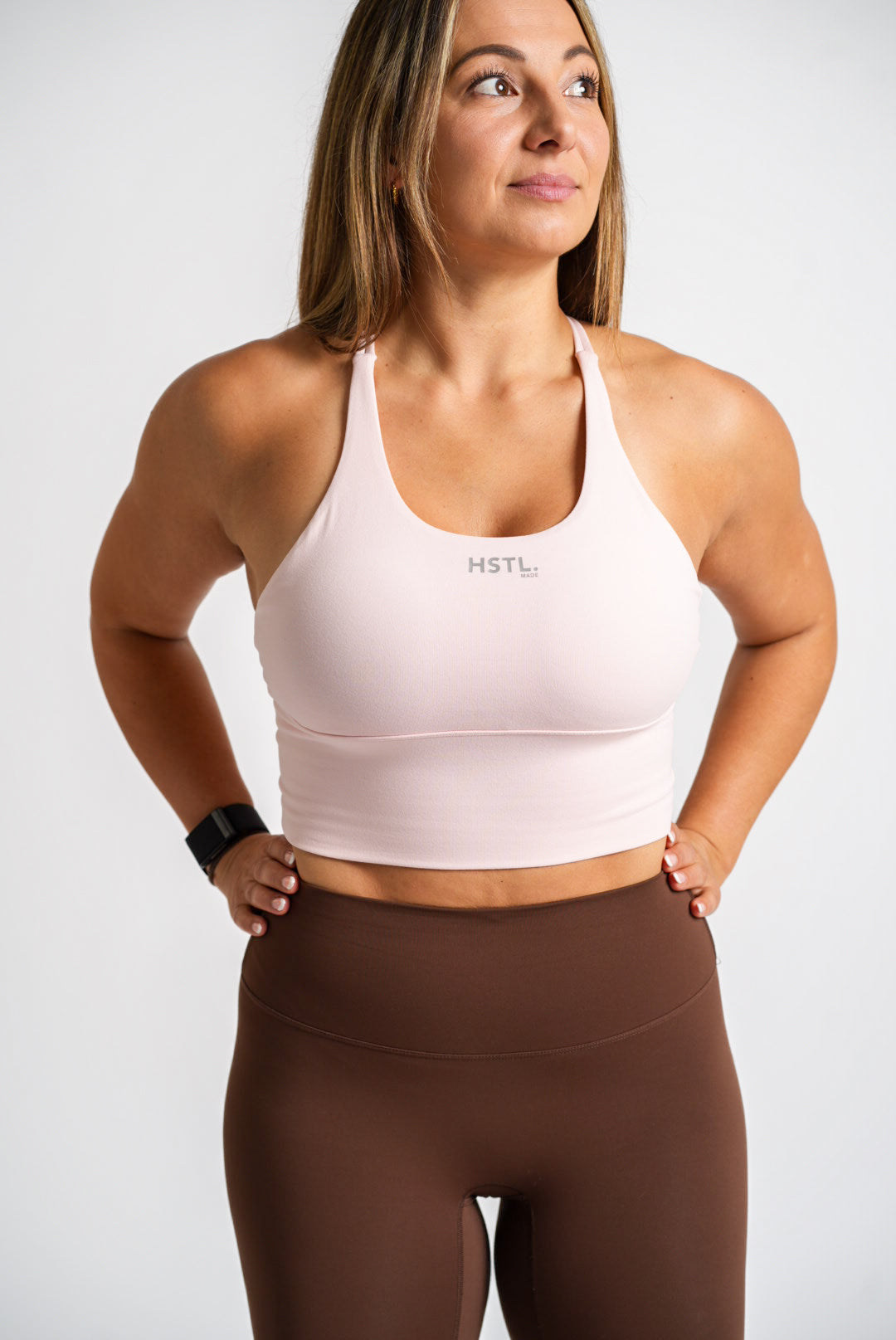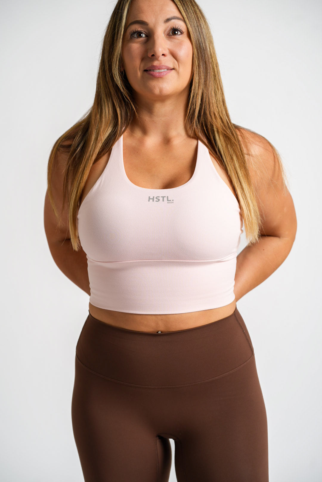 Meet the Longline Sports Bra. Buttery soft, extended length, double crossover back straps, and a stylish open ladder pattern in the center back. Embrace the daily grind in style!