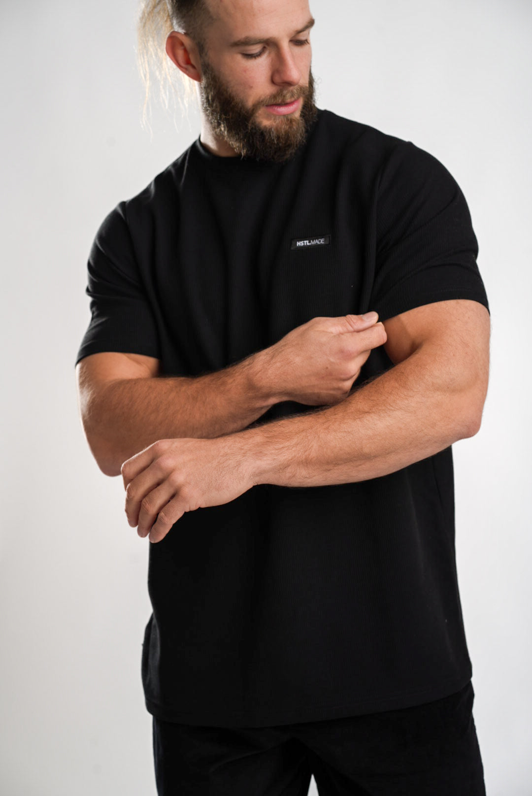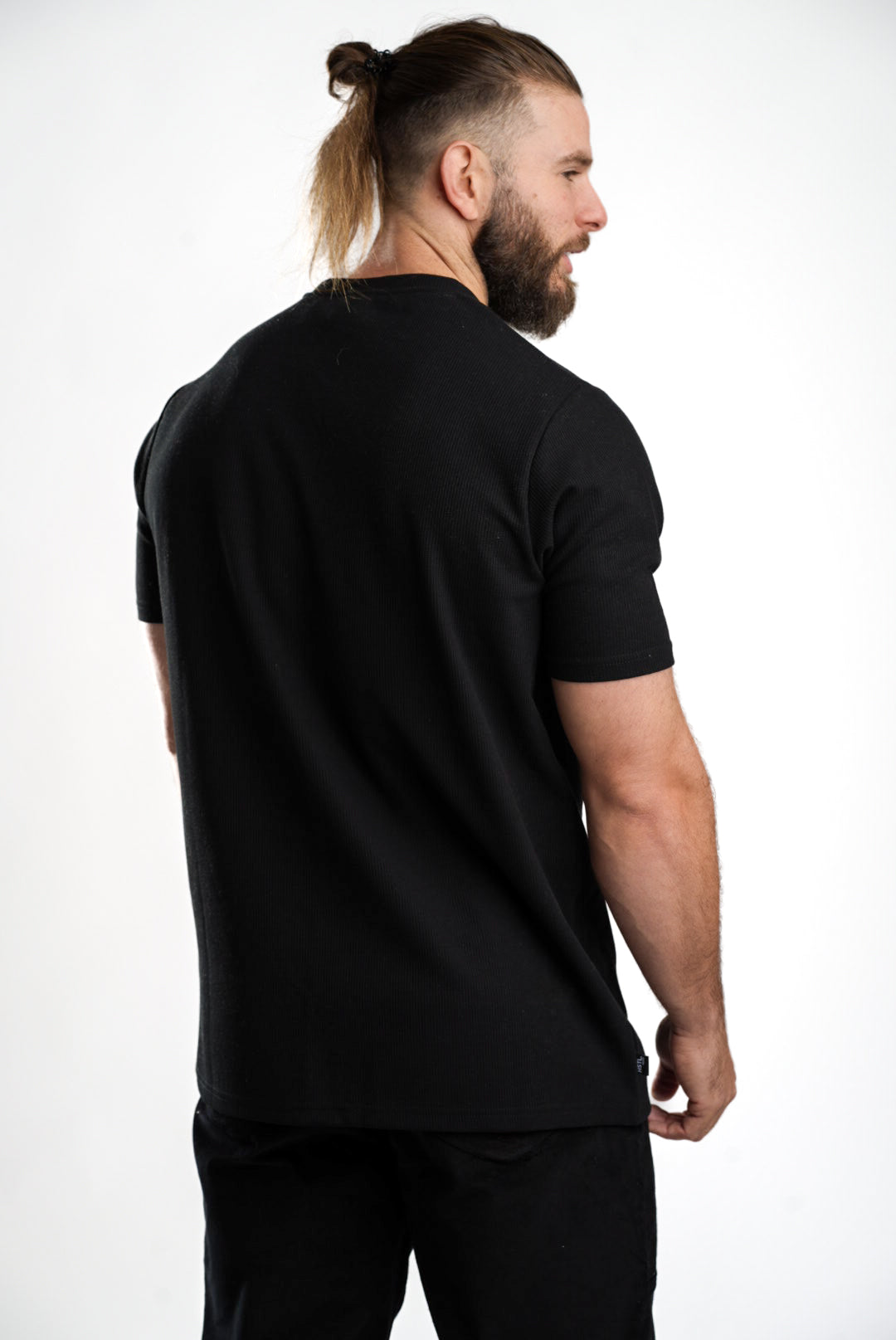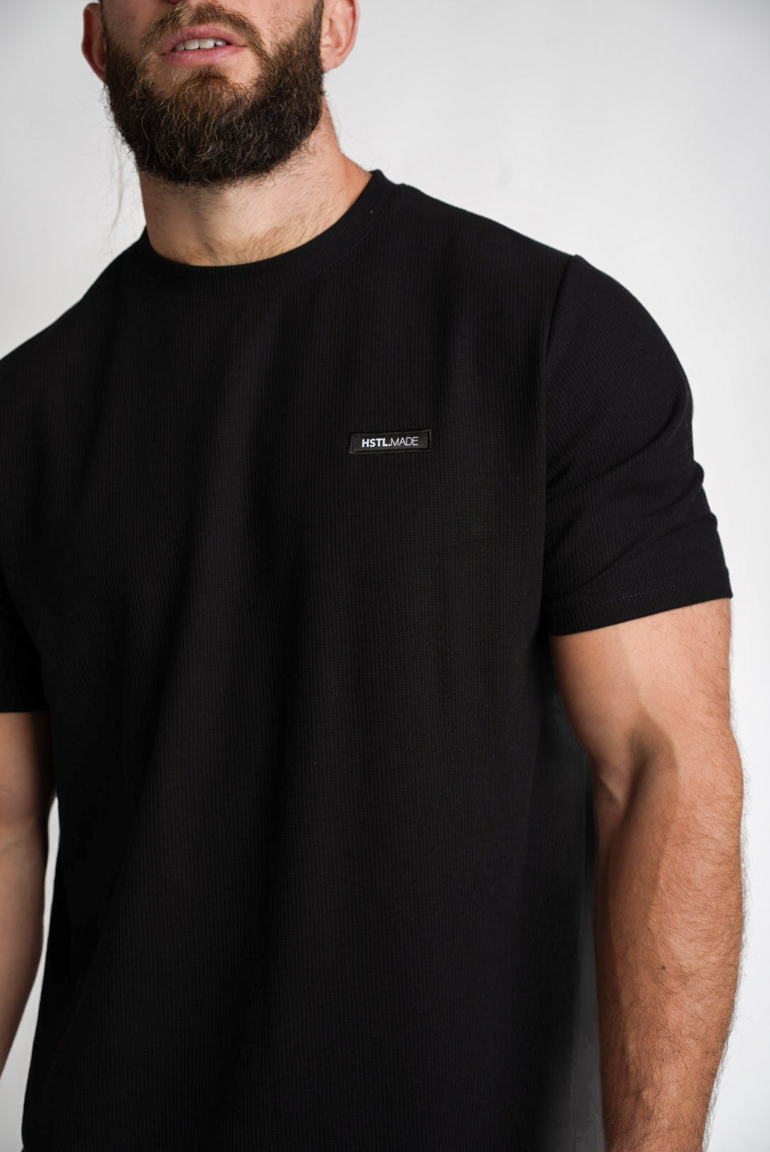 Meet our best-selling waffle tee. This shirt is built for the daily hustle一comfortable enough to train in, but stylish enough to go to dinner in. The Woven Patch Waffle Tee cuts out the fuss with its soft, moisture wicking, stretchy material and stylish waffle texture.